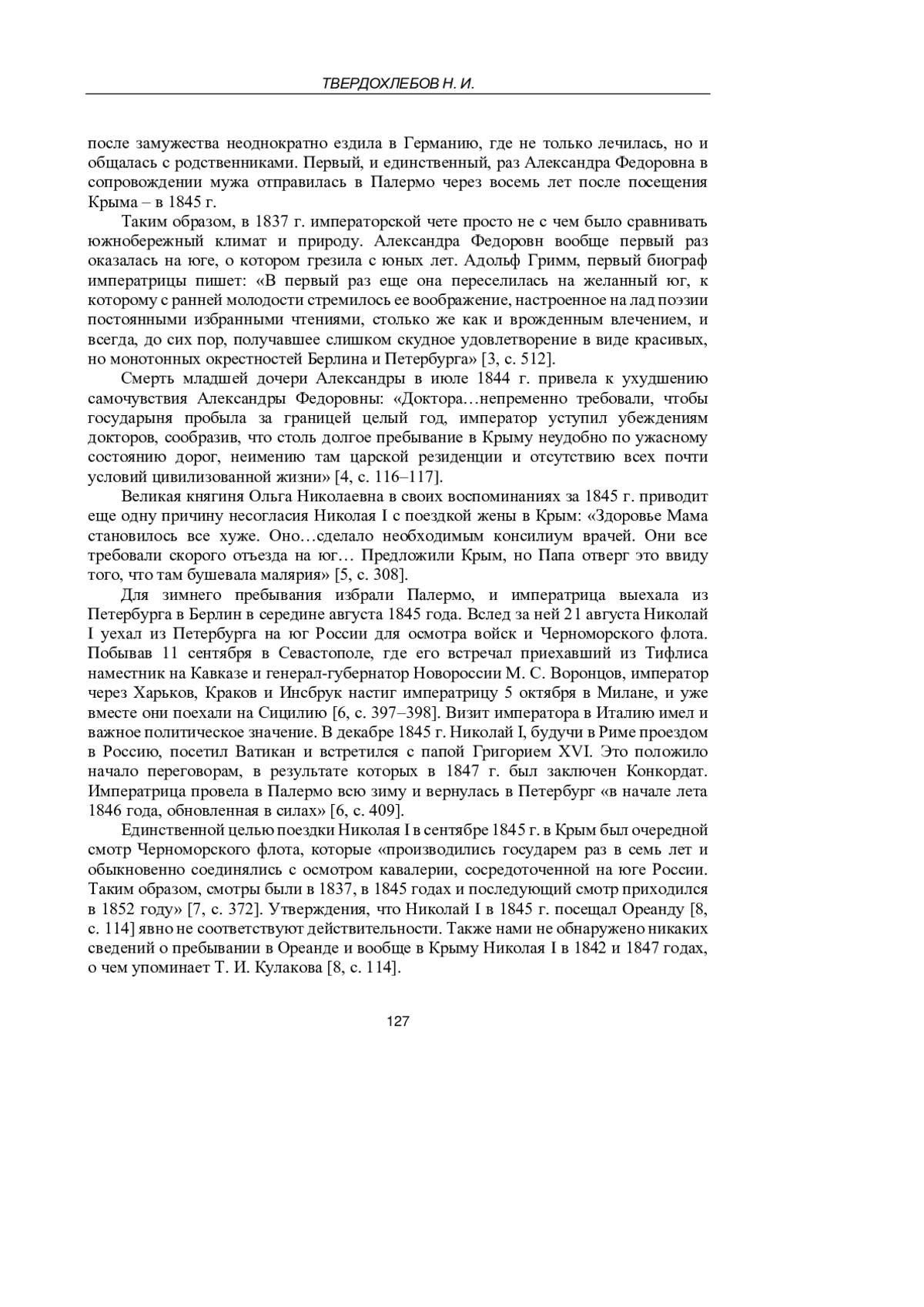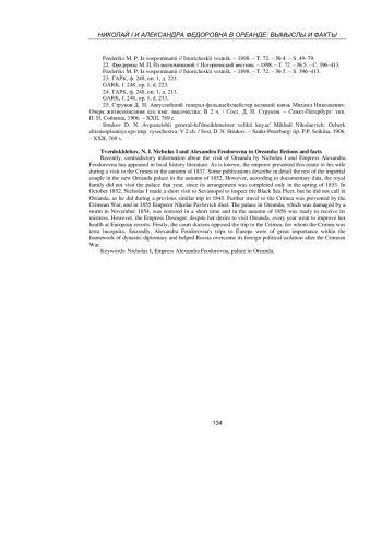 ТВЕРДОХЛЕБОВ Н. И. НИКОЛАЙ I И АЛЕКСАНДРА ФЕДОРОВНА В ОРЕАНДЕ: ВЫМЫСЛЫ И ФАКТЫ // УЧЕНЫЕ ЗАПИСКИ КРЫМСКОГО ФЕДЕРАЛЬНОГО УНИВЕРСИТЕТА ИМЕНИ В. И. ВЕРНАДСКОГО. ИСТОРИЧЕСКИЕ НАУКИ. 2025. Т. 11 № 1