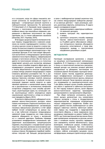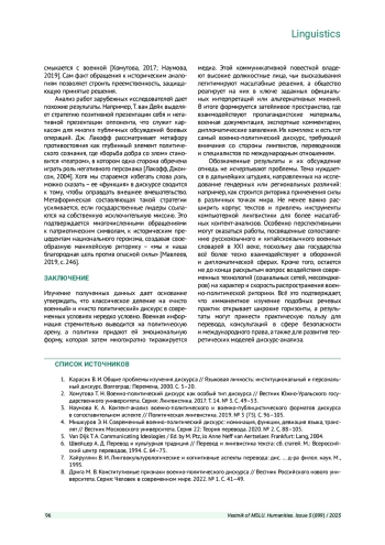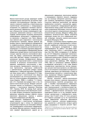 Статья: ВОЕННО-ПОЛИТИЧЕСКИЙ ДИСКУРС КАК ЛИНГВОКУЛЬТУРОЛОГИЧЕСКИЙ КОМПЛЕКСНЫЙ ФЕНОМЕН (2025)