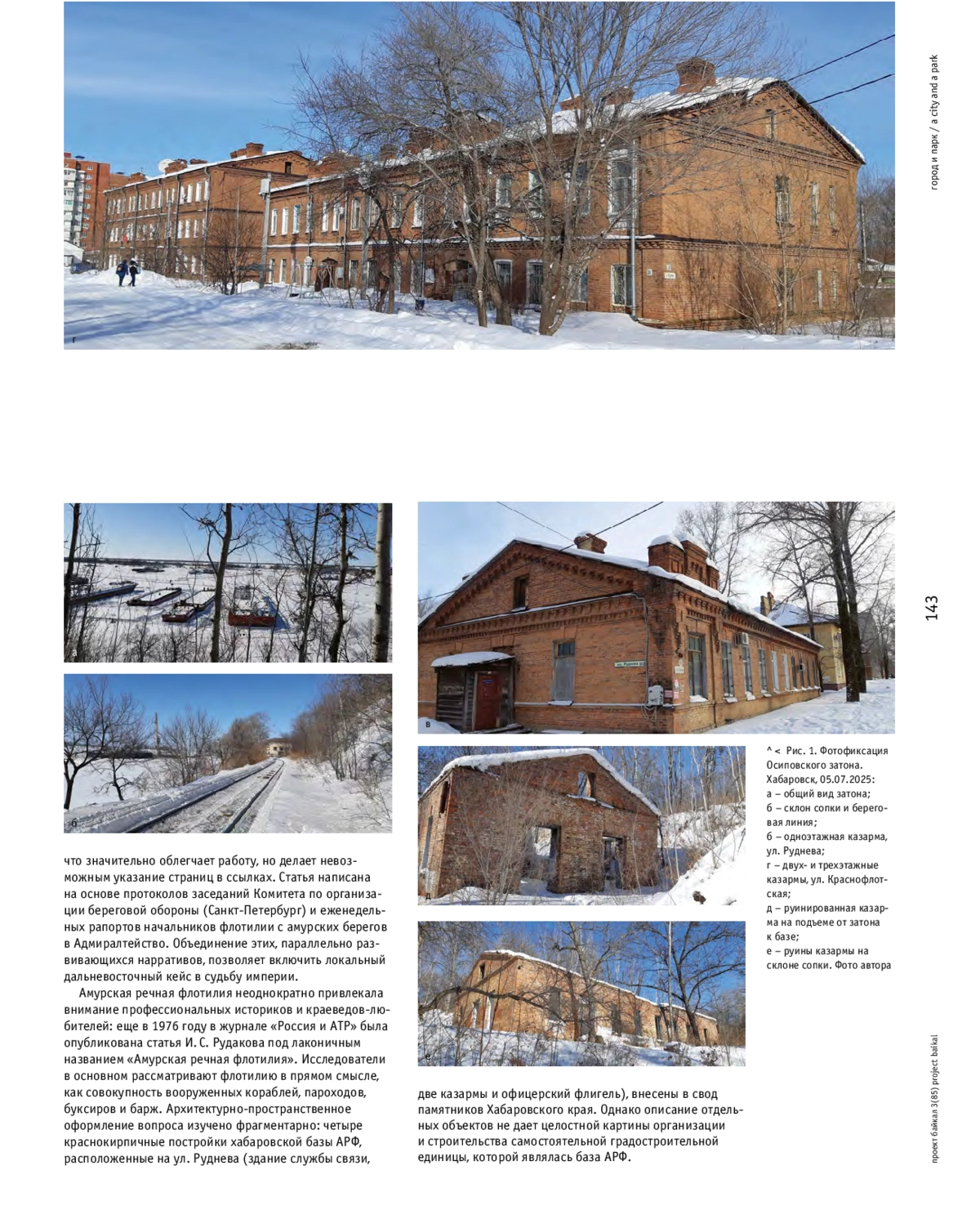 В статье представлены промежуточные результаты исследования «Военная тема в архитектурно-пространственном освоении Дальнего Востока», проводимого в рамках гранта Российского научного фонда. Основная часть исследования посвящена организации базы Амурской речной флотилии в Осиповском затоне под Хабаровском (1908-1918). На примере этого частного случая рассматривается ряд вопросов, связанных с пространственной и социальной иерархией военных городков, эффективностью войсковых строительных комиссий, проблемами поиска качественных стройматериалов, с адаптацией «буржуазных» проектов к особенностям экипажной жизни. Высказывается предположение о влиянии И. С. Китнера на формирование кирпичного гарнизонного стиля.