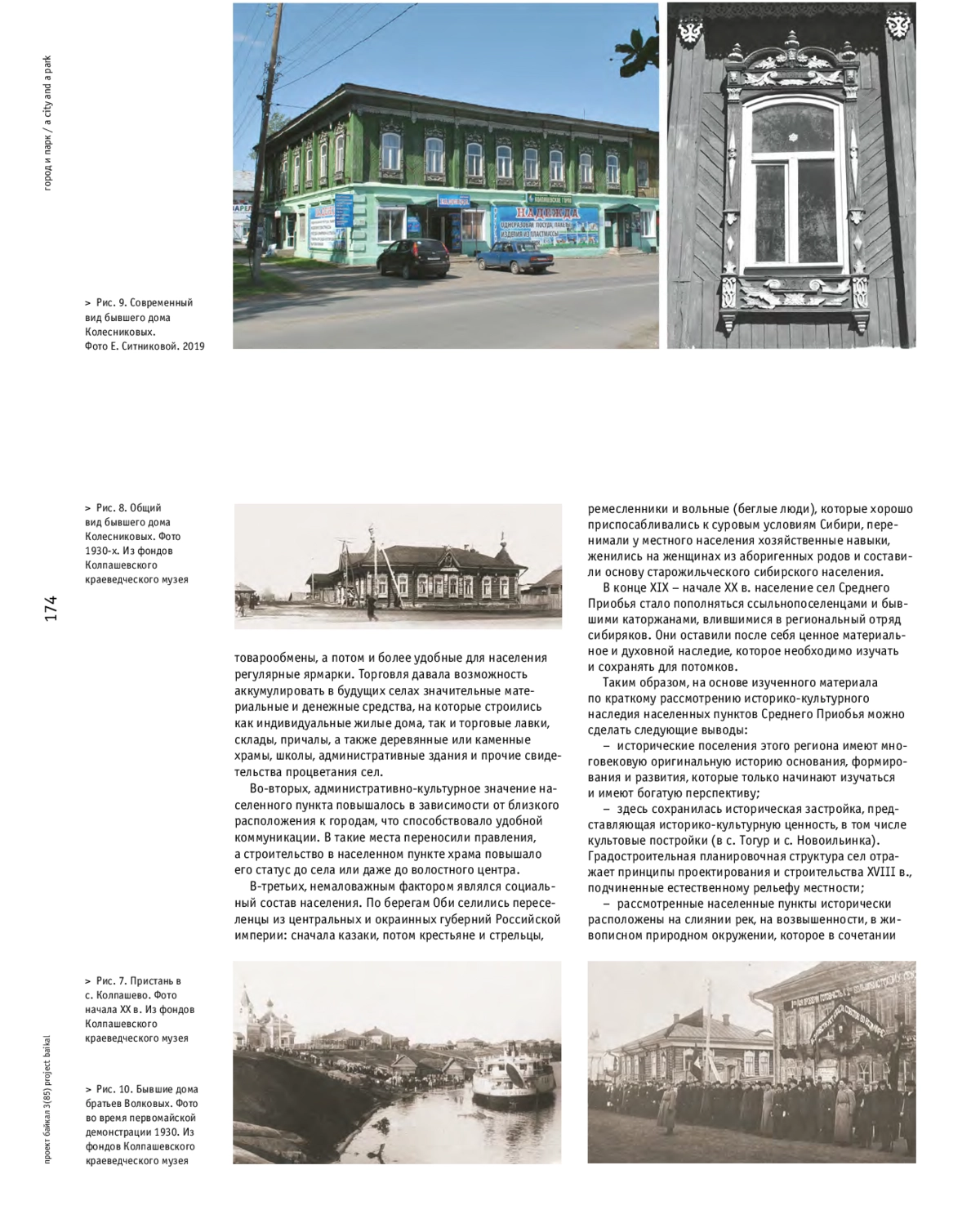 8. Ситникова, Е. В. Формирование архитектурного облика г. Колпашево под влиянием местных предпринимателей // Вестник Томского государственного архитектурно-строительного университета. - 2020. - Т. 22, № 5. - С. 9-24.
