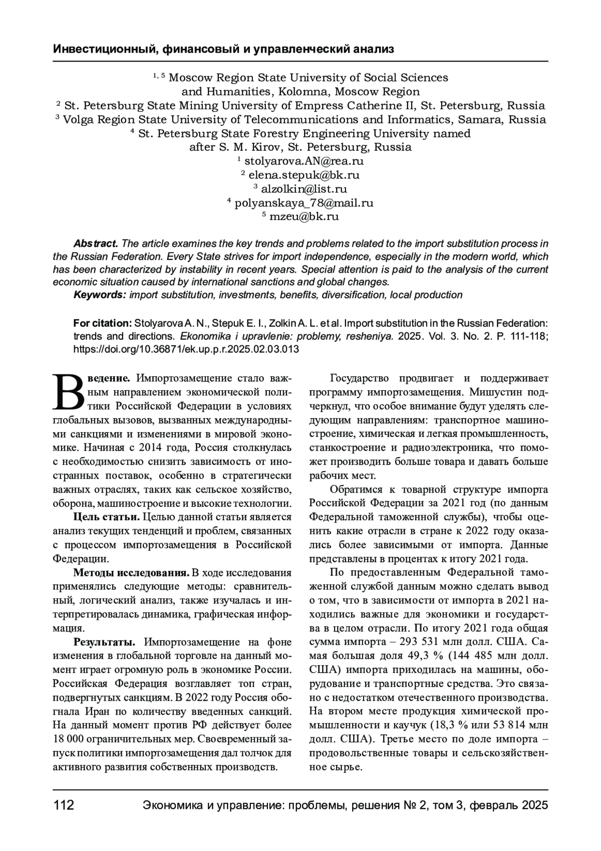 11. Шавтикова Л. М. Импортозамещение и её роль в экономике России, импортозамещение программного обеспечения // Финансовая экономика. - 2022. - № 9. - С. 134-136. EDN: OTLEFJ