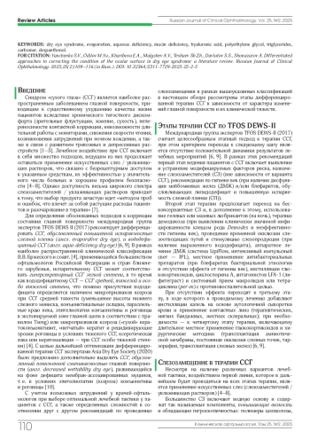 8. Wolffsohn J.S., Semp D.A., Dutta D. et al. Clinical practice patterns in the management of dry eye disease: A TFOS international survey 2023-24. Ocul Surf. 2025;36:164-172. DOI: 10.1016/j.jtos.2024.12.008