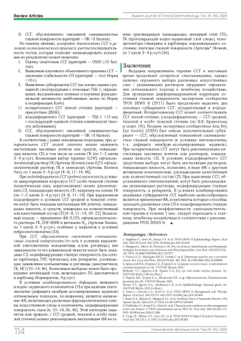 35. Сахнов С.Н., Янченко С.В., Малышев А.В. и др. Эпидемиология синдрома “сухого глаза” у пациентов перед хирургией катаракты. Офтальмология. 2020;17(2):281-289. DOI: 10.18008/1816-5095-2020-2-281-289