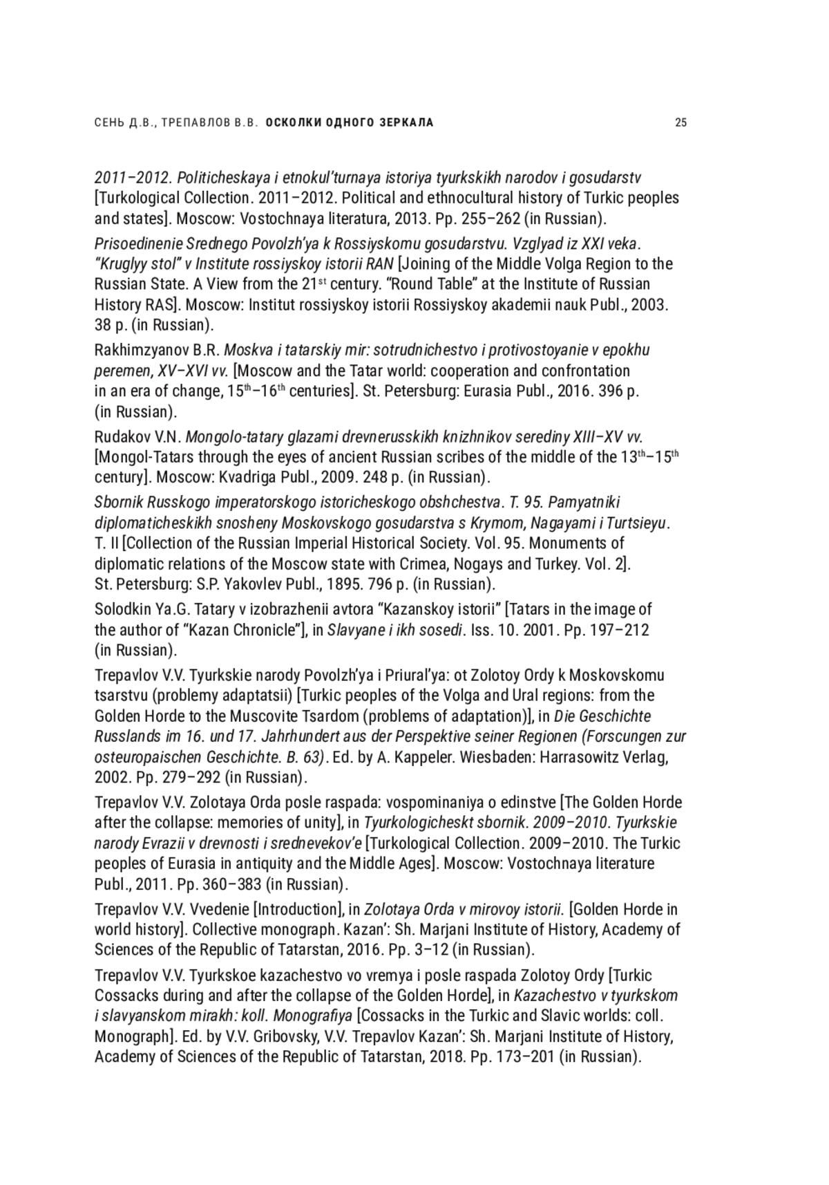 32. Трепавлов В.В. Введение // Золотая Орда в мировой истории. Коллективная монография. Казань: Институт истории им. Ш. Марджани Академии наук Республики Татарстан, 2016. C. 3-12.