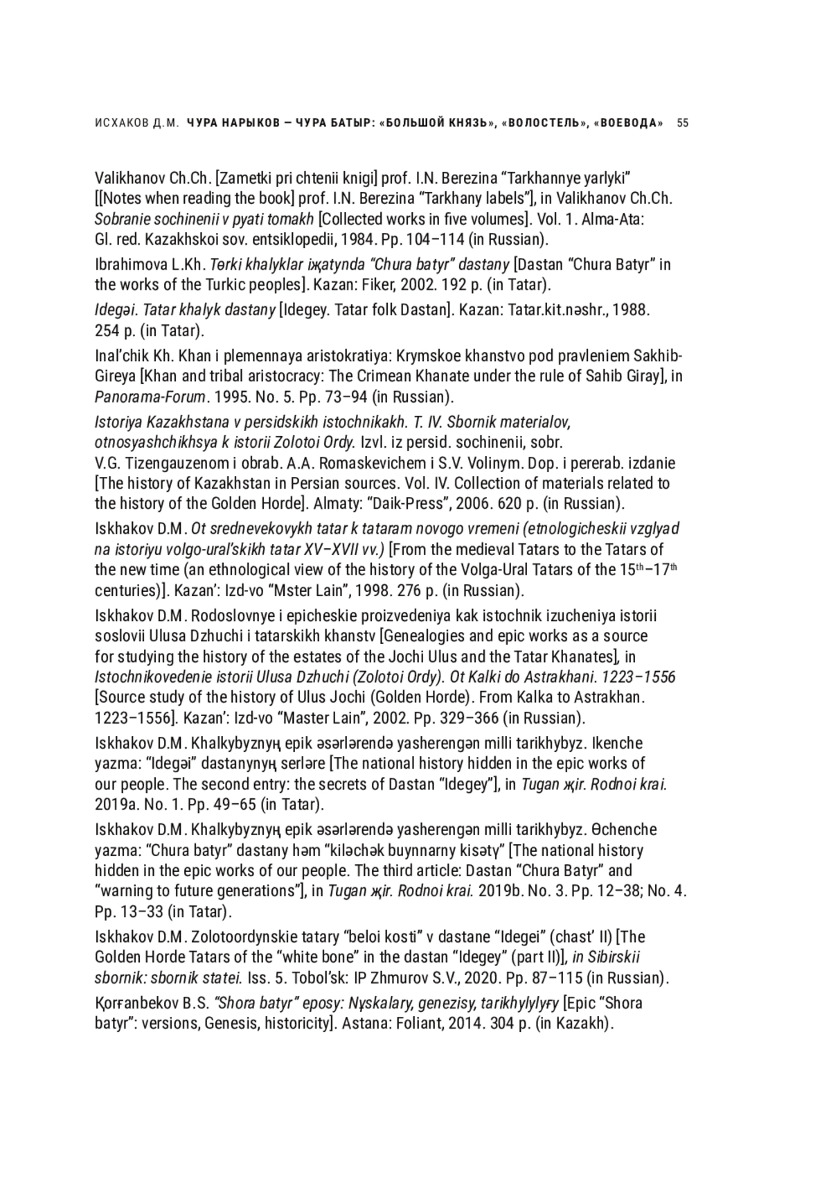 11. Исхаков Д.М. Золотоордынские татары “белой кости” в дастане “Идегей” (часть II) // Сибирский сборник: сборник статей. Вып. 5. Тобольск: ИП Жмуров С.В., 2020. С. 87-115.