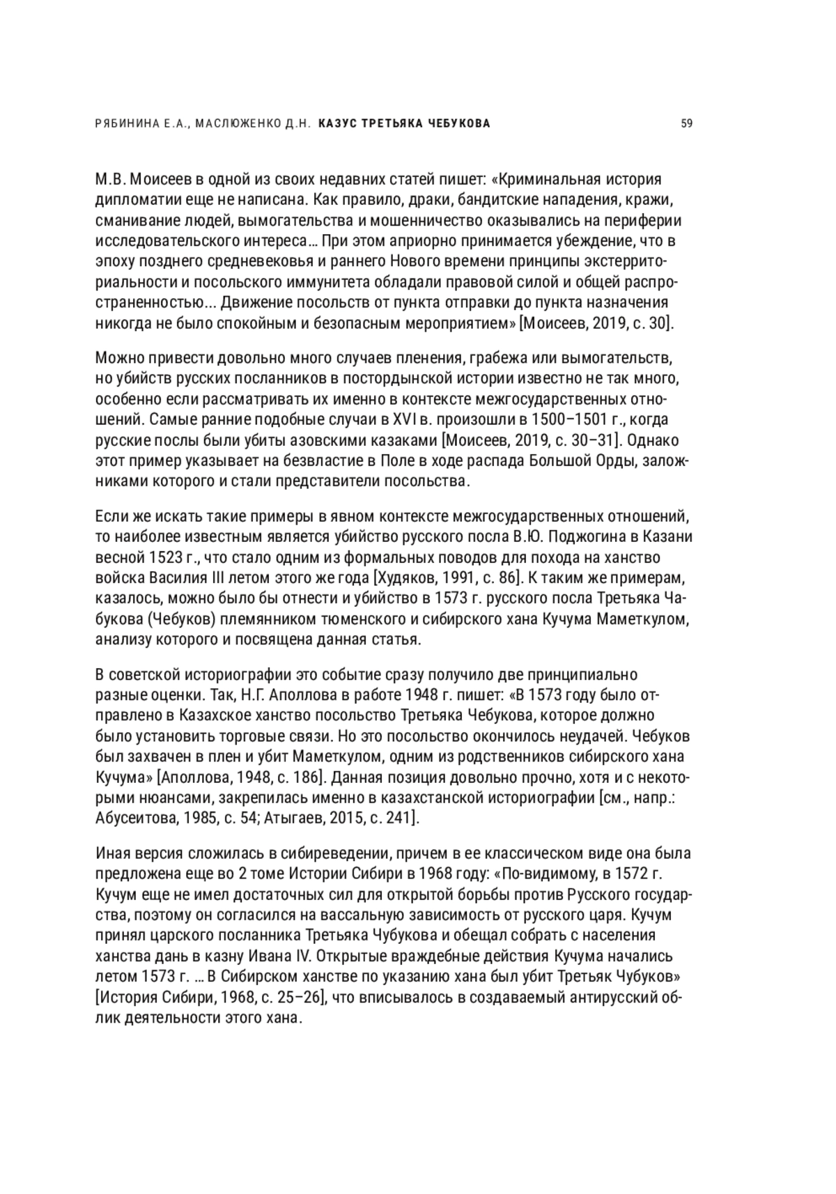 18. Маслюженко Д.Н., Рябинина Е.А. Поход 1483 г. и его место в истории русско-сибирских отношений // Вестник археологии, антропологии и этнографии. 2014. № 1(24). С. 115-123. EDN: XCFPQD