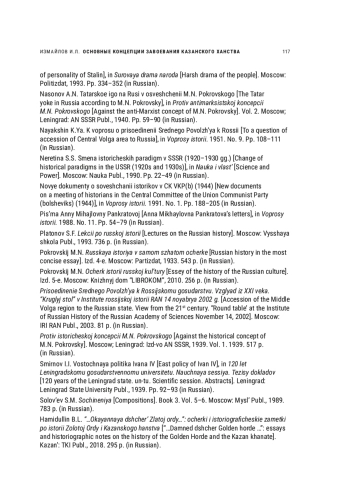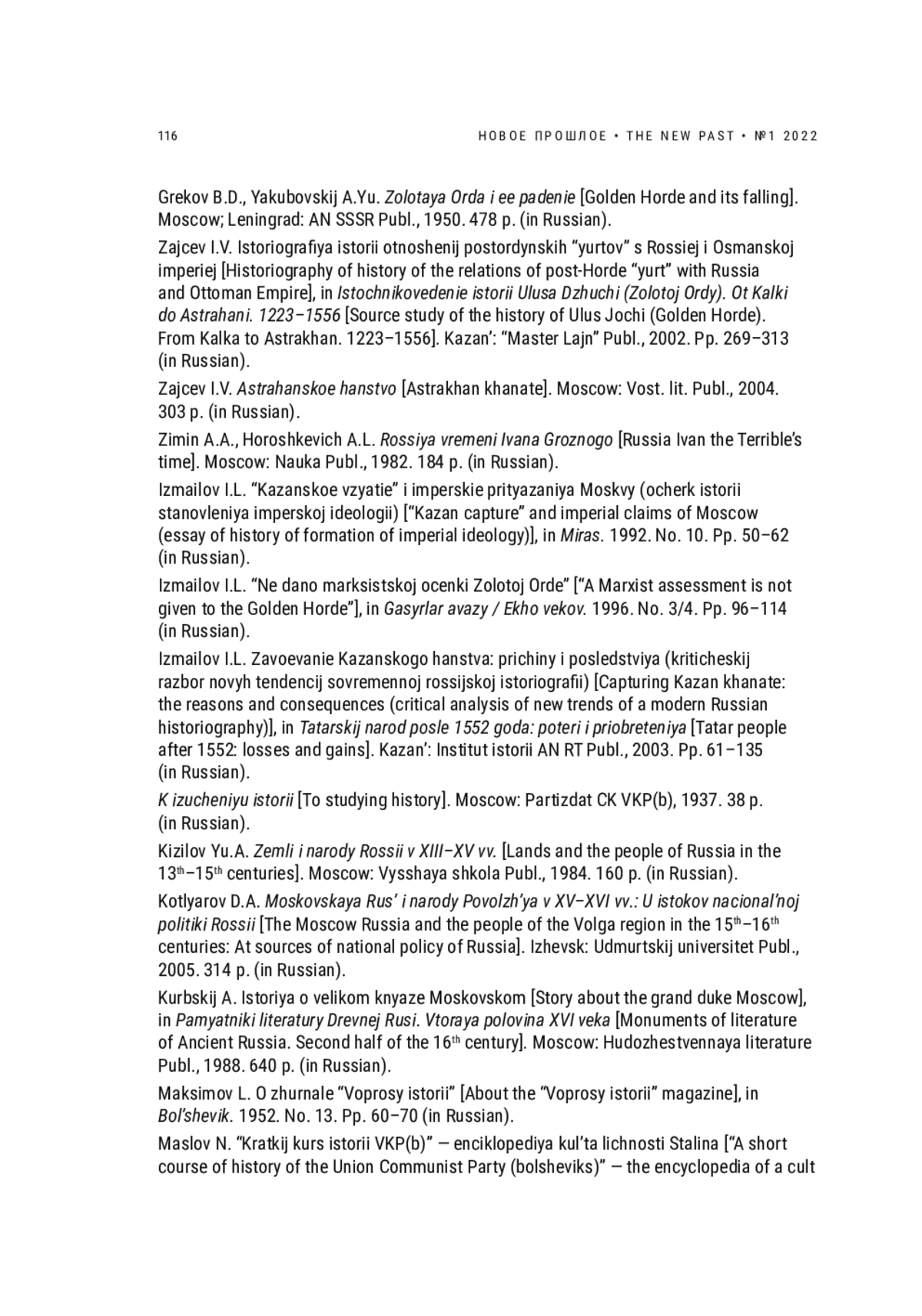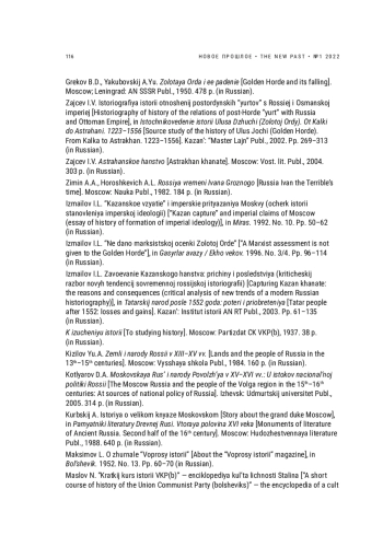 40. Хамидуллин Б.Л., Измайлов И.Л., Измайлов Б.И. История Казанского ханства в трудах отечественных историков (1920-1950-е гг.) // Научный Татарстан. 2012. № 3. С. 92-113. EDN: RVWAHH