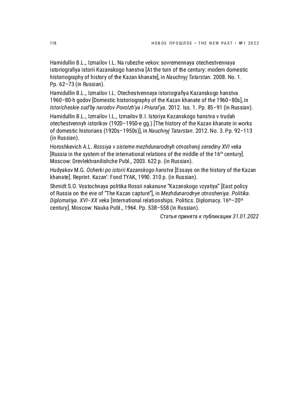 38. Хамидуллин Б.Л., Измайлов И.Л. На рубеже веков: современная отечественная историография истории Казанского ханства // Научный Татарстан. 2008. № 1. С. 62-73.