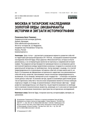 Проблема «золотоордынского наследия» в истории России, технологии инкорпорации иноверцев в состав православного Русского государства продолжают оставаться актуальными вопросами отечественной историографии. Обращение к работам исследователей и анализ источников позволяют высказать сомнение в обусловленности российской экспансии в восточном и южном направлениях лишь стремлением к обладанию бывшими владениями Улуса Джучи для повышения своего престижа. Внешняя политика России в этих направлениях прежде всего была связана с текущими потребностями государства. Умелое использование российским правительством татарских технологий осуществления власти, понятных для покоренных народов, ранее находившихся под властью Джучидов, способствовало довольно быстрому распространению среди большинства из них представлений о своем российском подданстве и о русском монархе как их законном государе. Значимую роль в распространении этой идеи среди новых подданных играла прослойка служилых татар. Особое положение Крымского ханства среди прочих татарских юртов, обусловленное османским протекторатом, продлило время существования этого государства, но не спасло его от поглощения Россией. Падение Крымского ханства не было предопределено изначально, однако сложившаяся к концу XVIII в. ситуация сделало это неизбежным