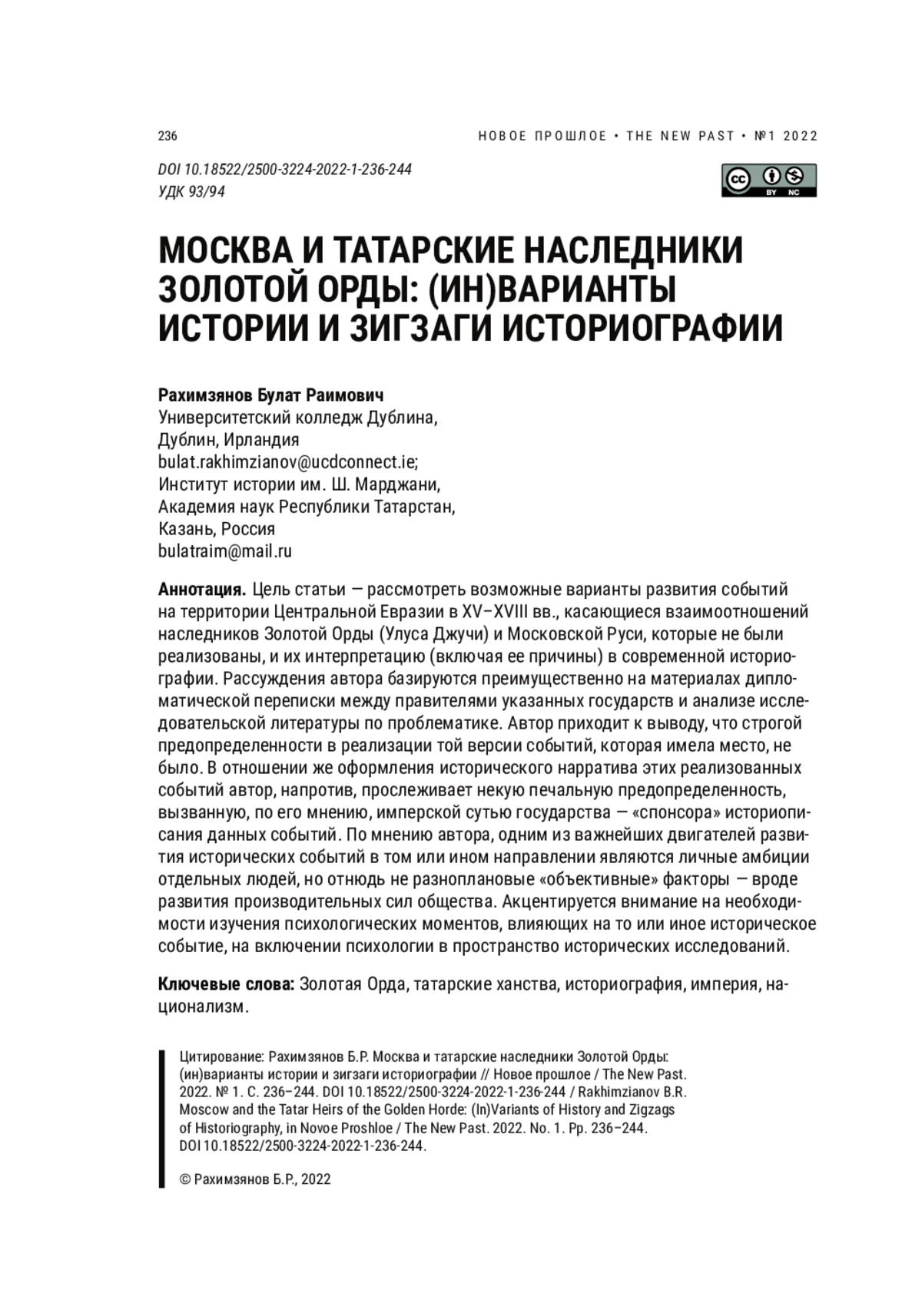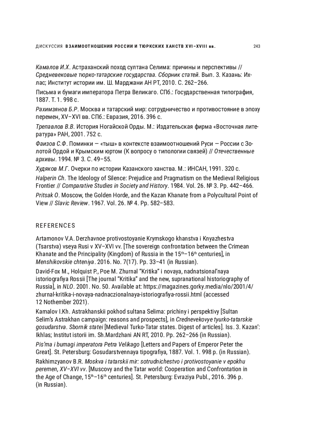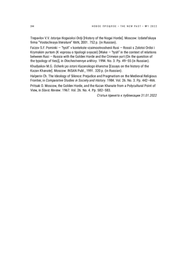 10. Pritsak O. Moscow, the Golden Horde, and the Kazan Khanate from a Polycultural Point of View // Slavic Review. 1967. Vol. 26. №4. Pp. 582-583.