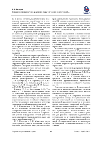 6. Копытова Н. Е., Макарова Л. Н. Повышение квалификации преподавателей вуза: состояние и проблемы // Вестник Тамбовского университета. Серия: Гуманитарные науки. 2012. № 4 (108). С. 108-117. EDN: OWXXQV
