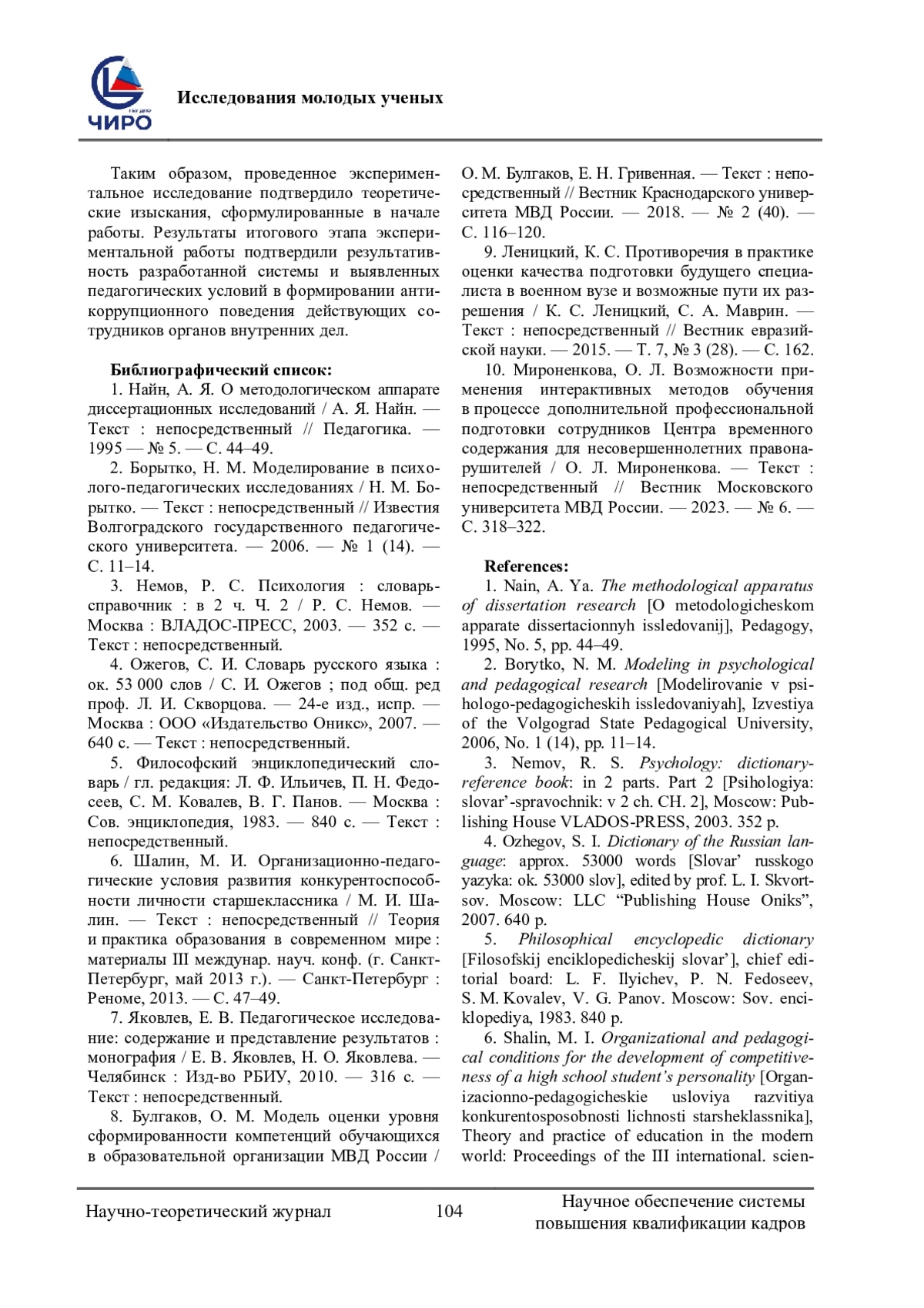 10. Мироненкова, О. Л. Возможности применения интерактивных методов обучения в процессе дополнительной профессиональной подготовки сотрудников Центра временного содержания для несовершеннолетних правонарушителей / О. Л. Мироненкова. - Текст: непосредственный // Вестник Московского университета МВД России. - 2023. - № 6. - С. 318-322.