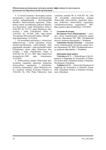 6. Об утверждении положения о формировании. функционировании и развитии региональной системы научно-методического сопровождения педагогических работников и управленческих кадров Челябинской области: приказ Министерства образования и науки Челябинской области от 24.05.2023 № 01/1311. - URL: https://minobr74.ru/documents/doc/13803(дата обращения: 18.10.2024).