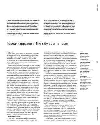 В контексте философии города рассмотрена роль знаков и символов в развитии городов. Показано, что во многих случаях знаковый поток вырождается в поток пустых знаков, симулякров, что наносит значительный ущерб городу. Альтернативой является организация потока эмоционально нагруженных знаков. В этом случае город выступает как рассказчик (нарратор). Приведены примеры городов, успешно развивающихся как города-нарраторы.