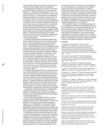 3. Ермакова, Ю. И., Кочуров, Б. И. Природно-ландшафтные, исторические и градостроительные факторы развития Хабаровска // Юг России: экология, развитие. - 2022. Т. 17. - № 3. - C. 153-162.