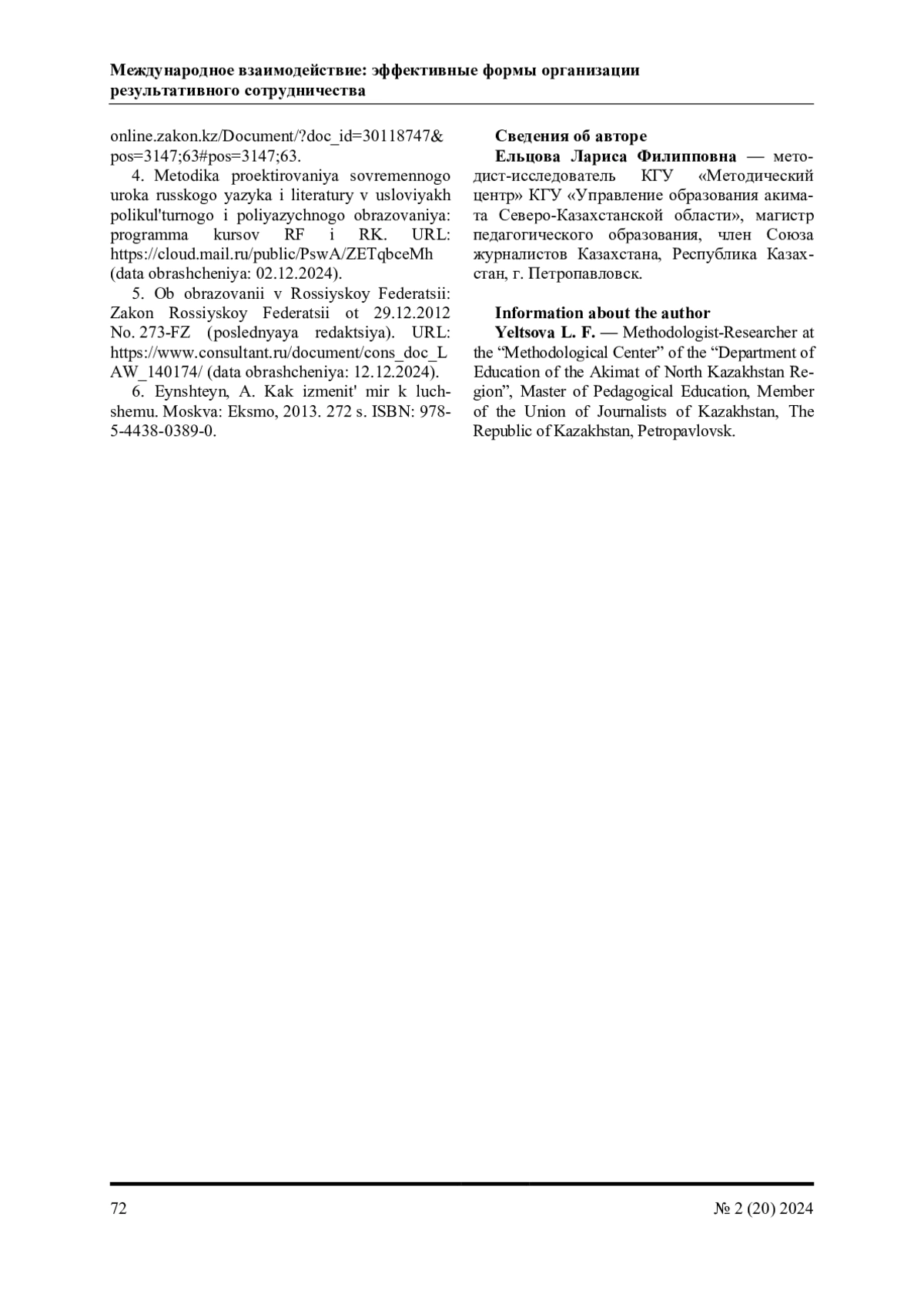 5. Об образовании в Российской Федерации: Закон Российской Федерации от 29.12.2012 № 273-ФЗ (последняя редакция). - URL: https://www.consultant.ru/document/cons_doc_L AW_140174/ (дата обращения: 12.12.2024).