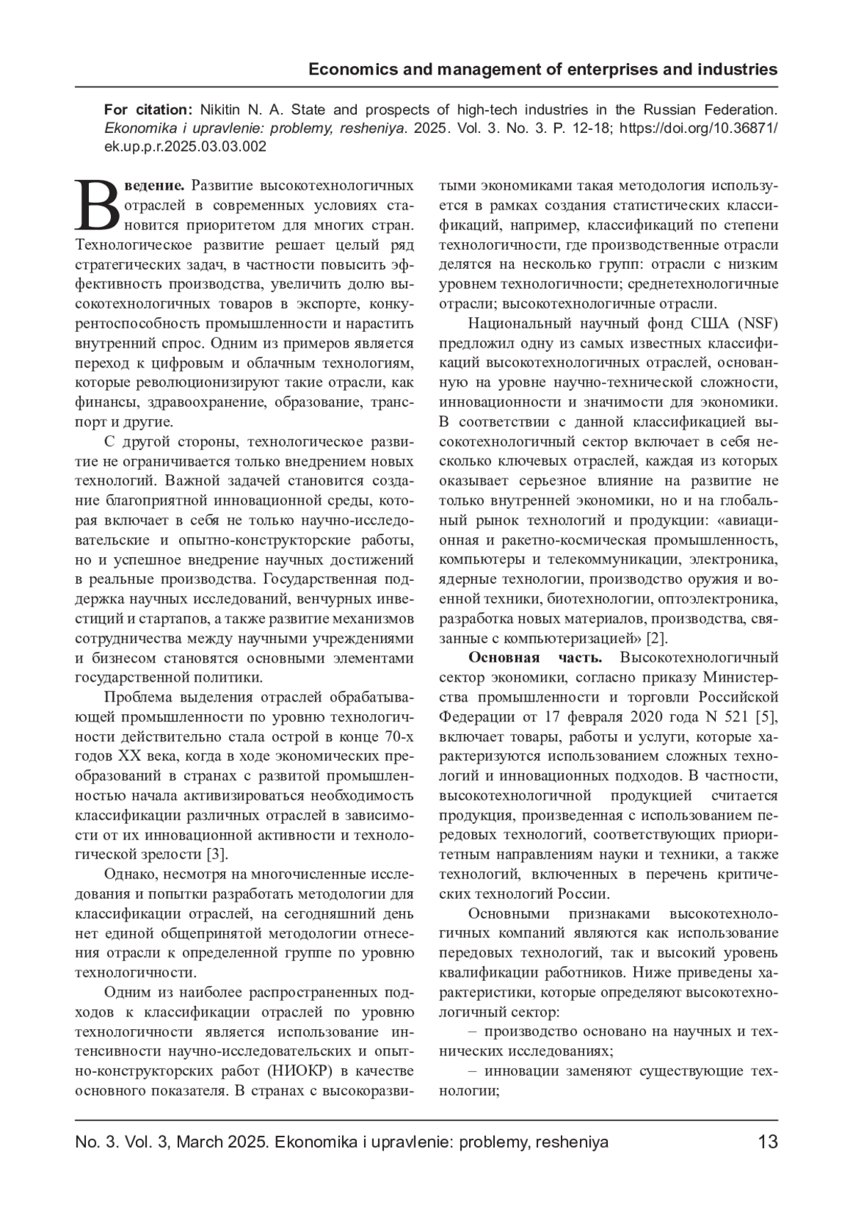 Развитие высокотехнологичных отраслей в современных условиях становится приоритетом для многих стран.