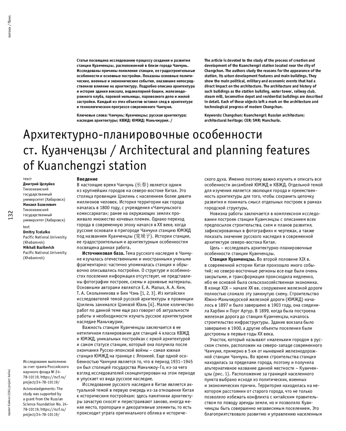 ЦЕЛУЙКО Д., БАЗИЛЕВИЧ М. Е. АРХИТЕКТУРНО-ПЛАНИРОВОЧНЫЕ ОСОБЕННОСТИ СТ. КУАНЧЕНЦЗЫ // ПРОЕКТ БАЙКАЛ. 2025. № 84, ТОМ 22