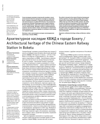 ГЛАТОЛЕНКОВА Е. В., БАЗИЛЕВИЧ М. Е. АРХИТЕКТУРНОЕ НАСЛЕДИЕ КВЖД В ГОРОДЕ БОКЕТУ // ПРОЕКТ БАЙКАЛ. 2025. № 84, ТОМ 22