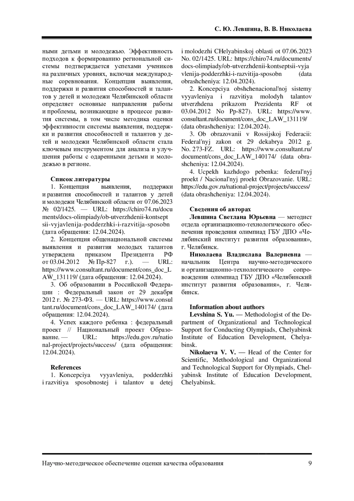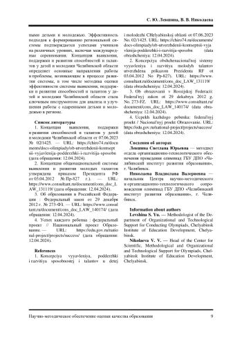 1. Концепция выявления, поддержки и развития способностей и талантов у детей и молодежи Челябинской области от 07.06.2023 № 02/1425.- URL: https://chiro74.ru/documents/docsolimpiady/ob-utverzhdenii-kontseptsii-vyjavlenija-podderzhki-i-razvitija-sposobn (дата обращения:12.04.2024).