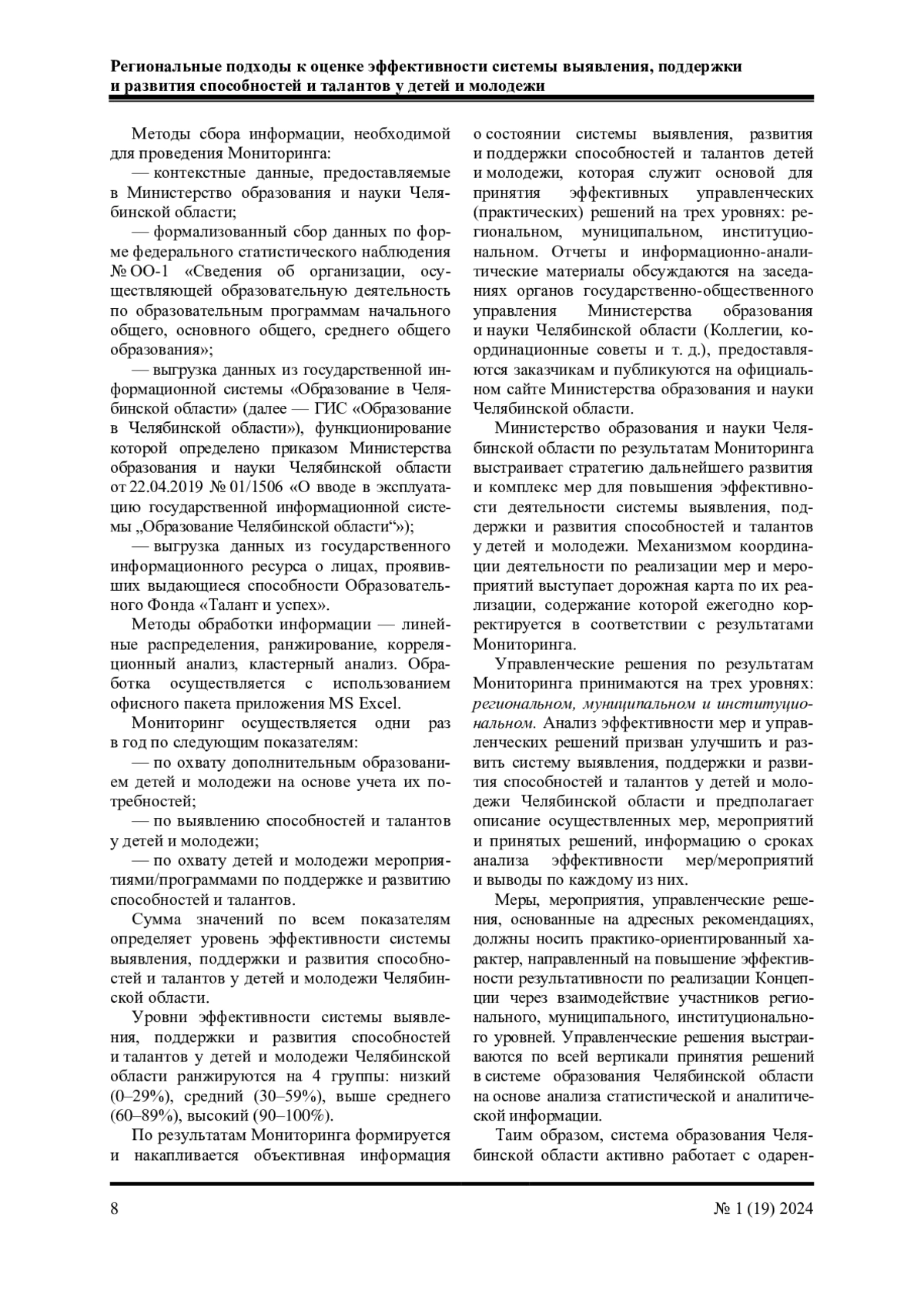 В статье рассматриваются процедура, инструменты, методы сбора данных методики выявления, поддержки и развития способностей и талантов у детей и молодежи Челябинской области, также представлен комплекс мер для повышения эффективности деятельности системы выявления, поддержки и развития способностей и талантов у детей и молодежи.