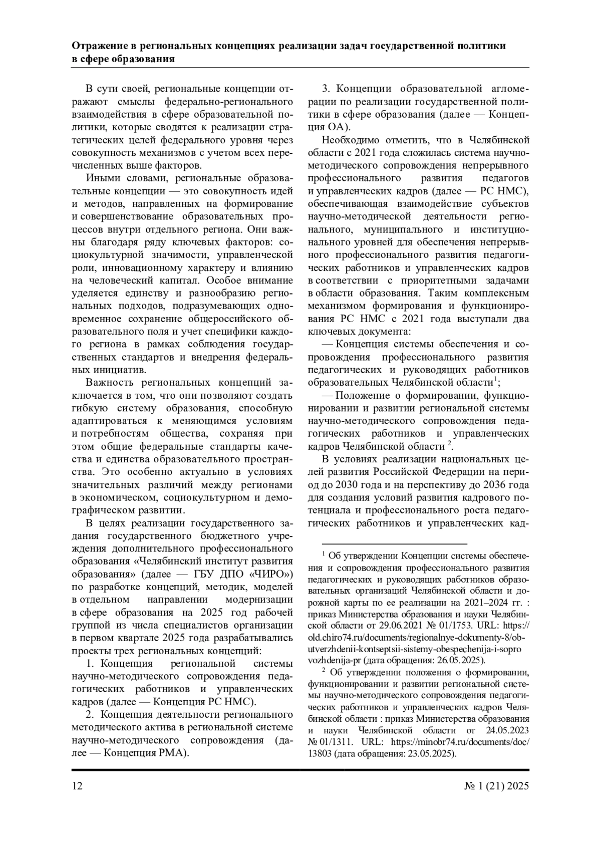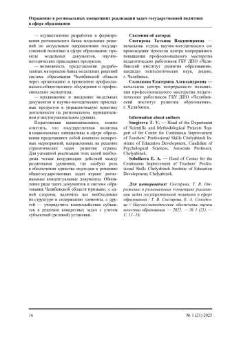 Статья: ОТРАЖЕНИЕ В РЕГИОНАЛЬНЫХ КОНЦЕПЦИЯХ РЕАЛИЗАЦИИ ЗАДАЧ ГОСУДАРСТВЕННОЙ ПОЛИТИКИ В СФЕРЕ ОБРАЗОВАНИЯ (2025)