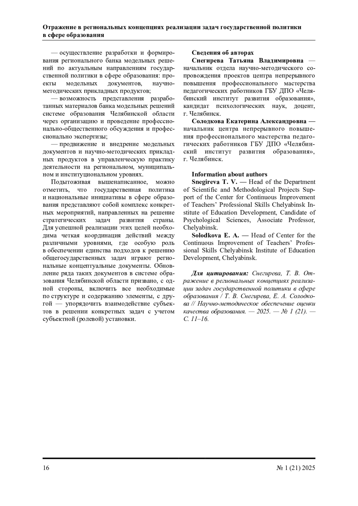 СНЕГИРЕВА Т. В., СОЛОДКОВА Е. А. ОТРАЖЕНИЕ В РЕГИОНАЛЬНЫХ КОНЦЕПЦИЯХ РЕАЛИЗАЦИИ ЗАДАЧ ГОСУДАРСТВЕННОЙ ПОЛИТИКИ В СФЕРЕ ОБРАЗОВАНИЯ // НАУЧНО-МЕТОДИЧЕСКОЕ ОБЕСПЕЧЕНИЕ ОЦЕНКИ КАЧЕСТВА ОБРАЗОВАНИЯ. 2025. № 1 (21)