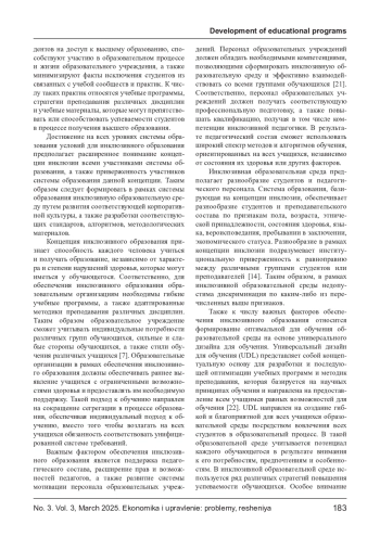 15. Bodhi R., Singh T., Joshi Y., Sangroya D. Impact of psychological factors, university environment and sustainable behaviour on teachers’ intention to incorporate inclusive education in higher education // International Journal of Educational Management. - 2021. - Vol. 36, № 4. - P. 381396. DOI: 10.1108/IJEM-02-2020-0113