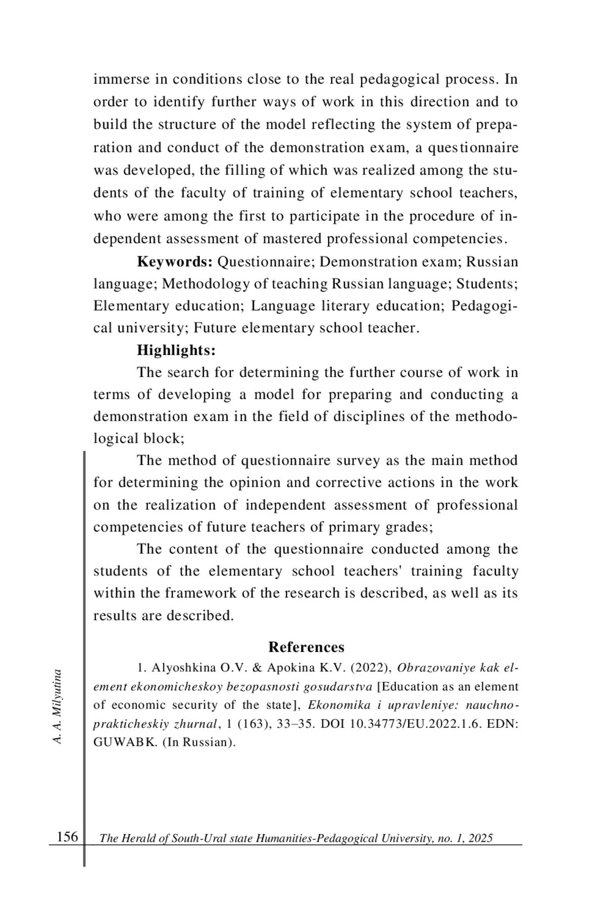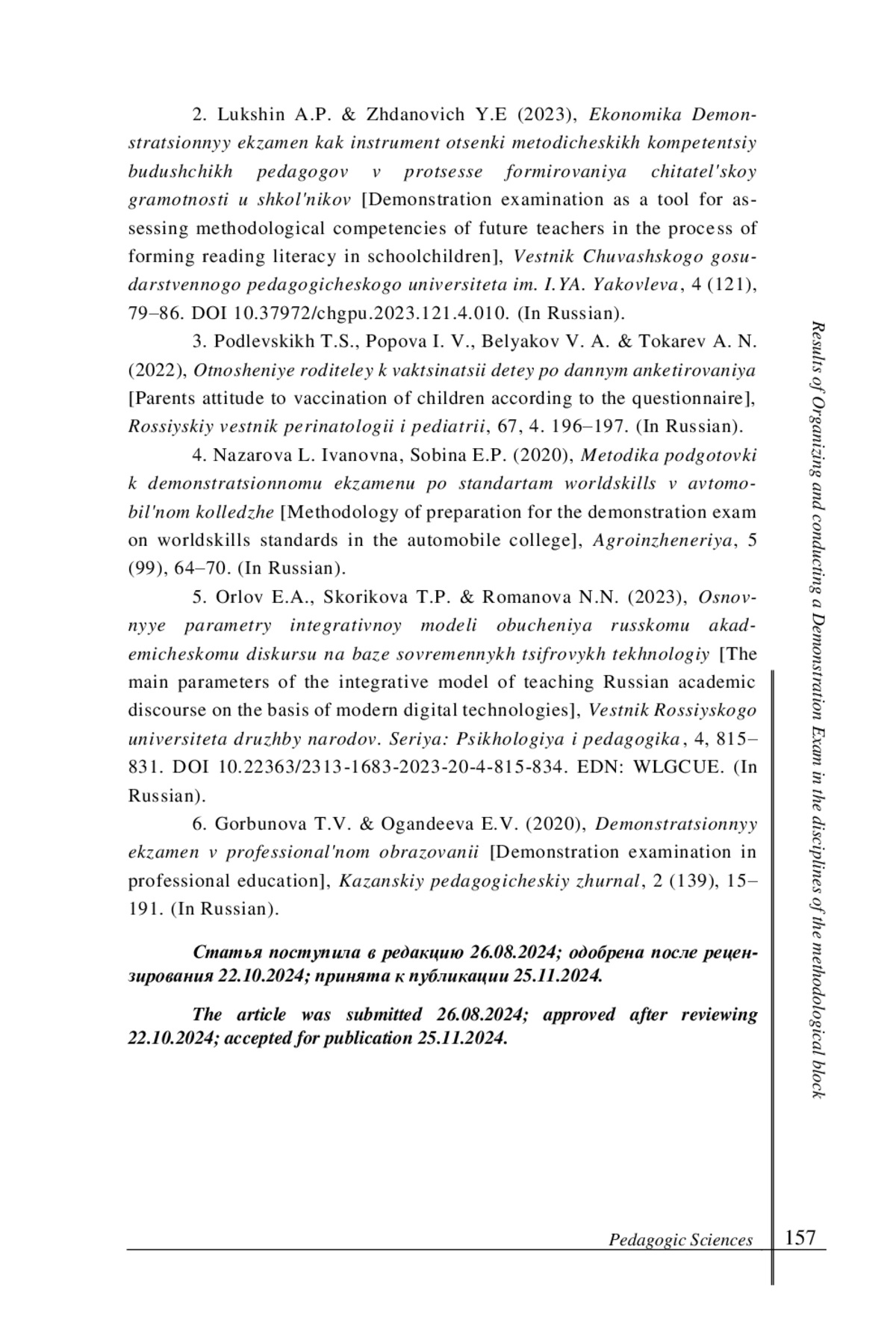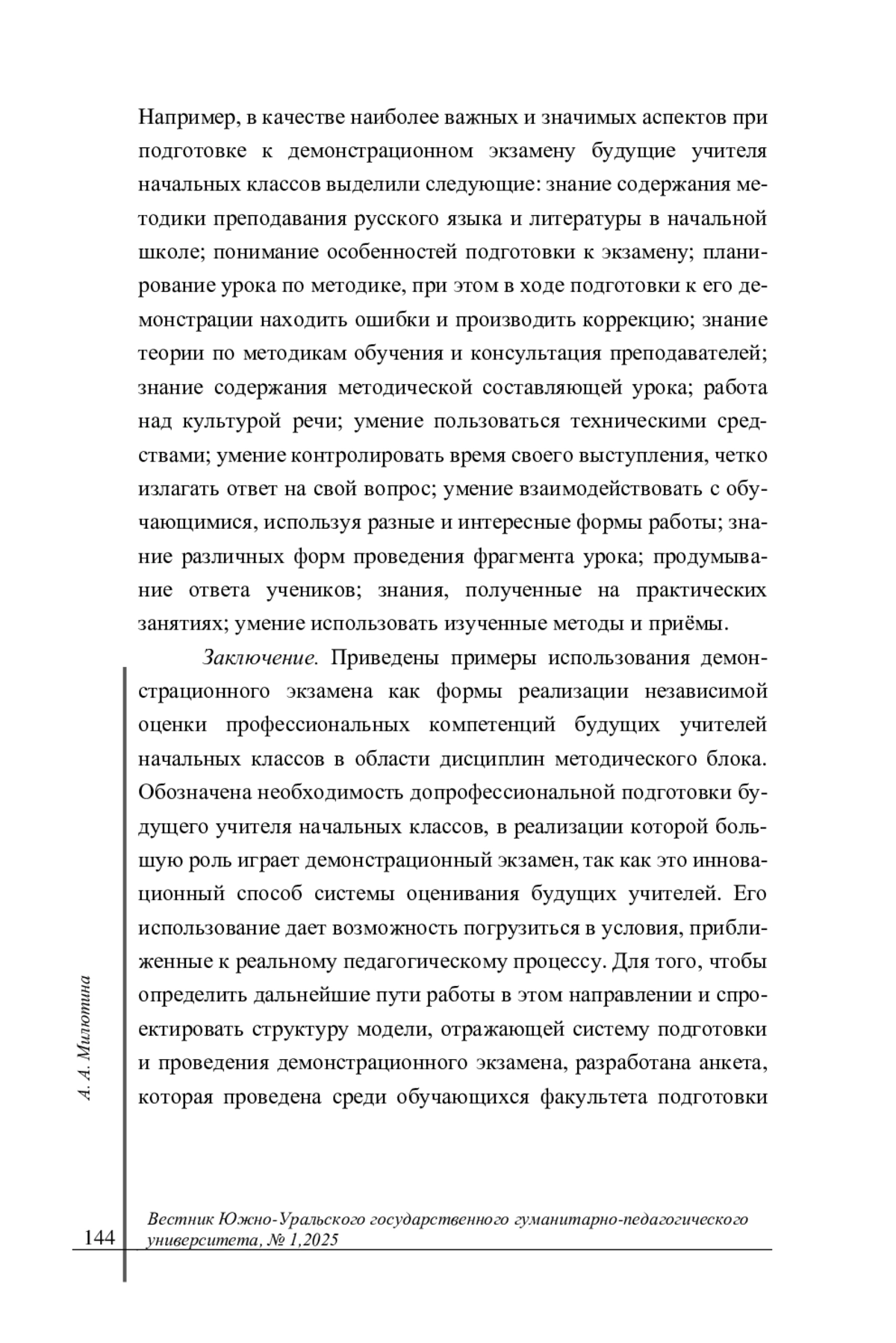 2. Лукшин А. П., Жданович Ю. Е. Демонстрационный экзамен как инструмент оценки методических компетенций будущих педагогов в процессе формирования читательской грамотности у школьников // Вестник Чувашского государственного педагогического университета им. И.Я. Яковлева. 2023. № 4 (121). С. 79-86. DOI: 10.37972/chgpu.2023.121.4.010 EDN: RPNRHV