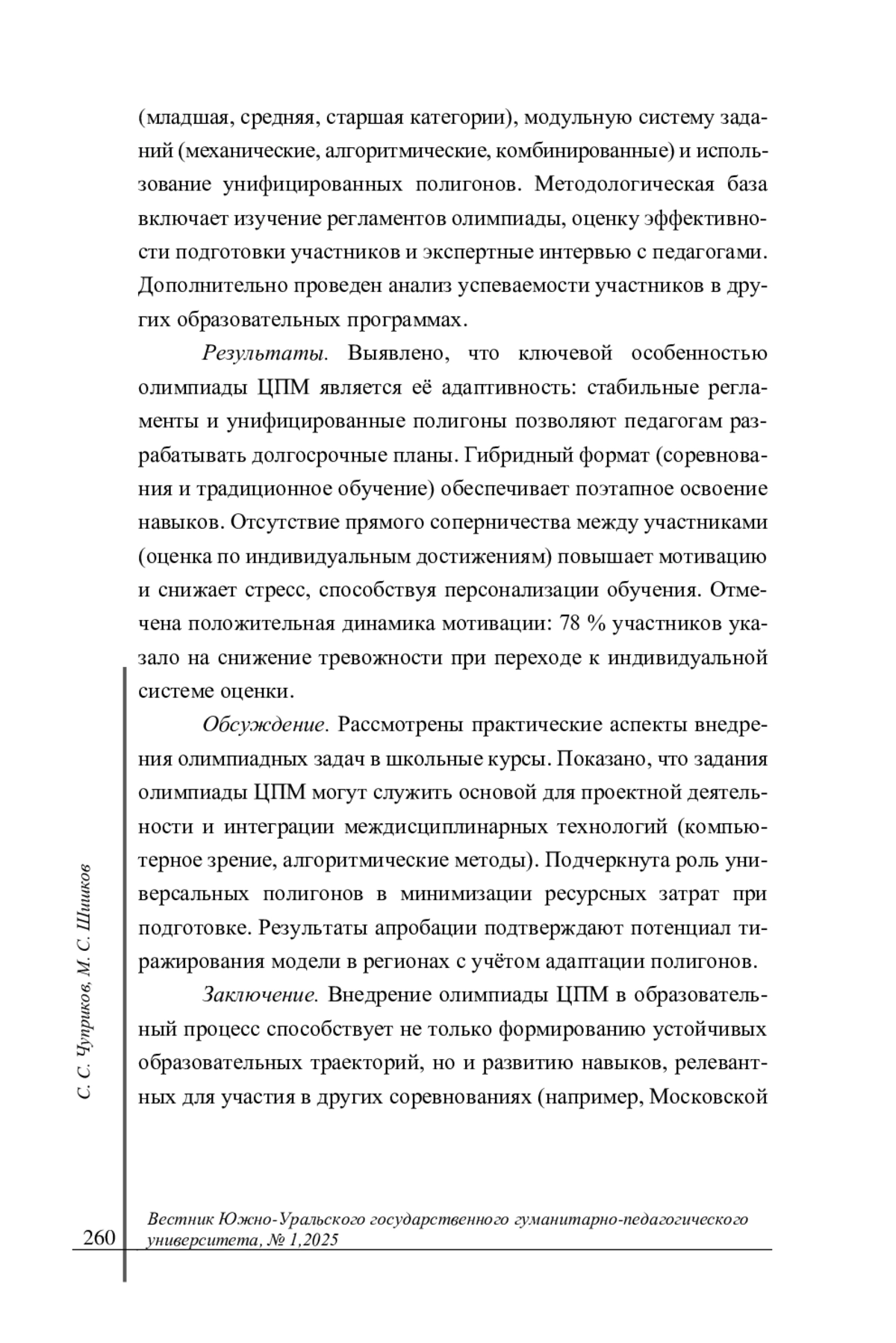 ЧУПРИКОВ С. С., ШИШКОВ М. С. ОЛИМПИАДА ЦЕНТРА ПЕДАГОГИЧЕСКОГО МАСТЕРСТВА КАК СРЕДСТВО ФОРМИРОВАНИЯ ОБРАЗОВАТЕЛЬНОЙ ТРАЕКТОРИИ ОБУЧАЮЩИХСЯ // ВЕСТНИК ЮЖНО-УРАЛЬСКОГО ГОСУДАРСТВЕННОГО ГУМАНИТАРНО-ПЕДАГОГИЧЕСКОГО УНИВЕРСИТЕТА. 2025. № 1 (185)