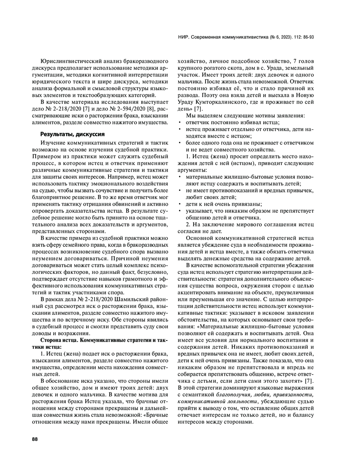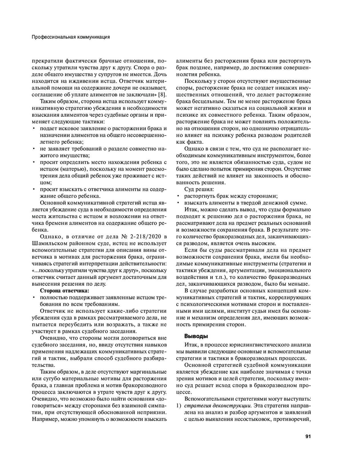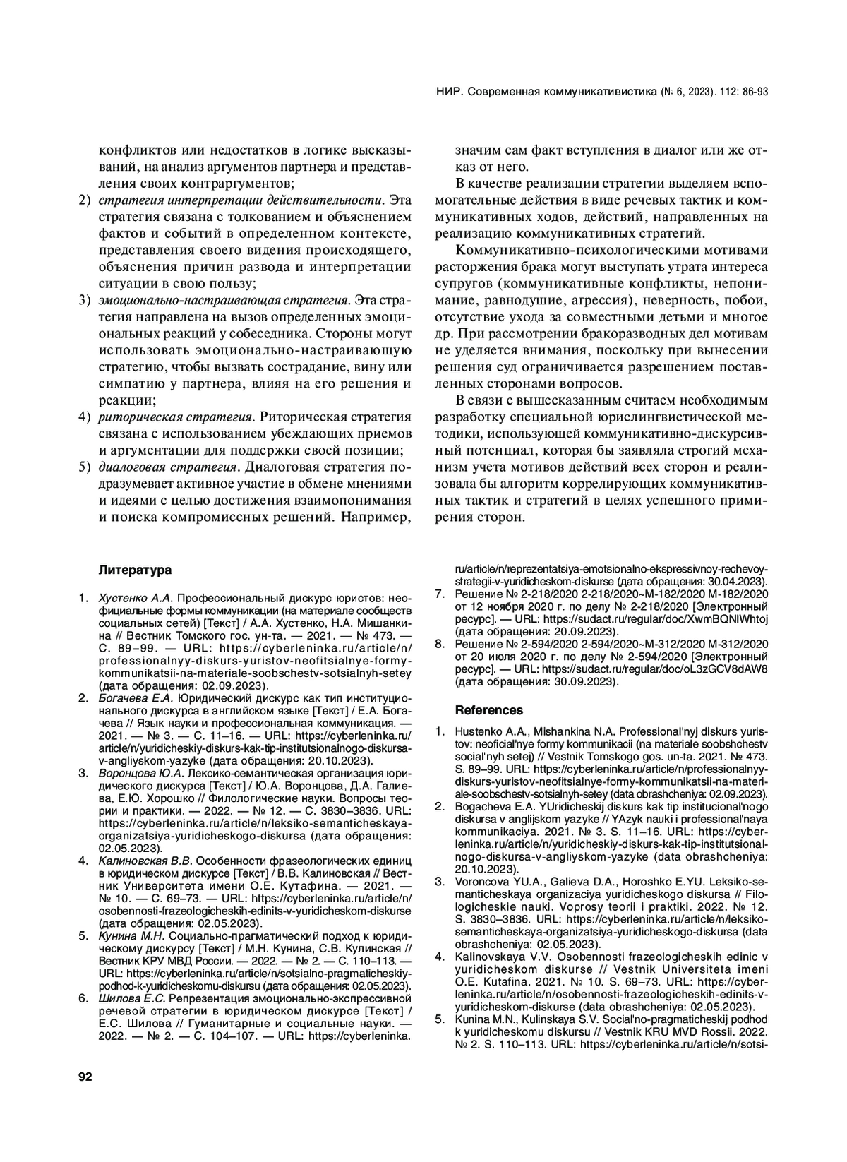 Березин Д.С. Голикова Т.А. Коммуникативные тактики и стратегии в бракоразводных процессах: юрислингвистический аспект // Научные исследования и разработки. Современная коммуникативистика. – 2023. – № 6. – С. 86–94.