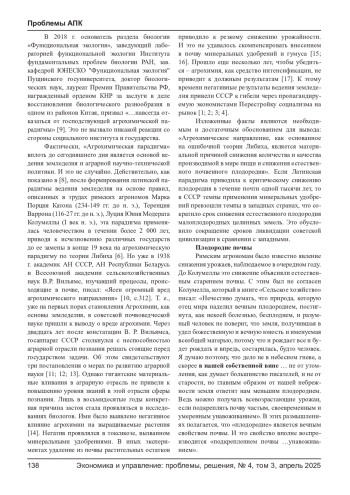 33. Тарханов О. В. Агрохимия не совместима с жизнью // Экономика и управление: проблемы, решения. - 2025. - Т. 1(156). - С. 135-144. EDN: KPZRRY