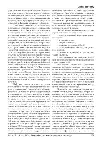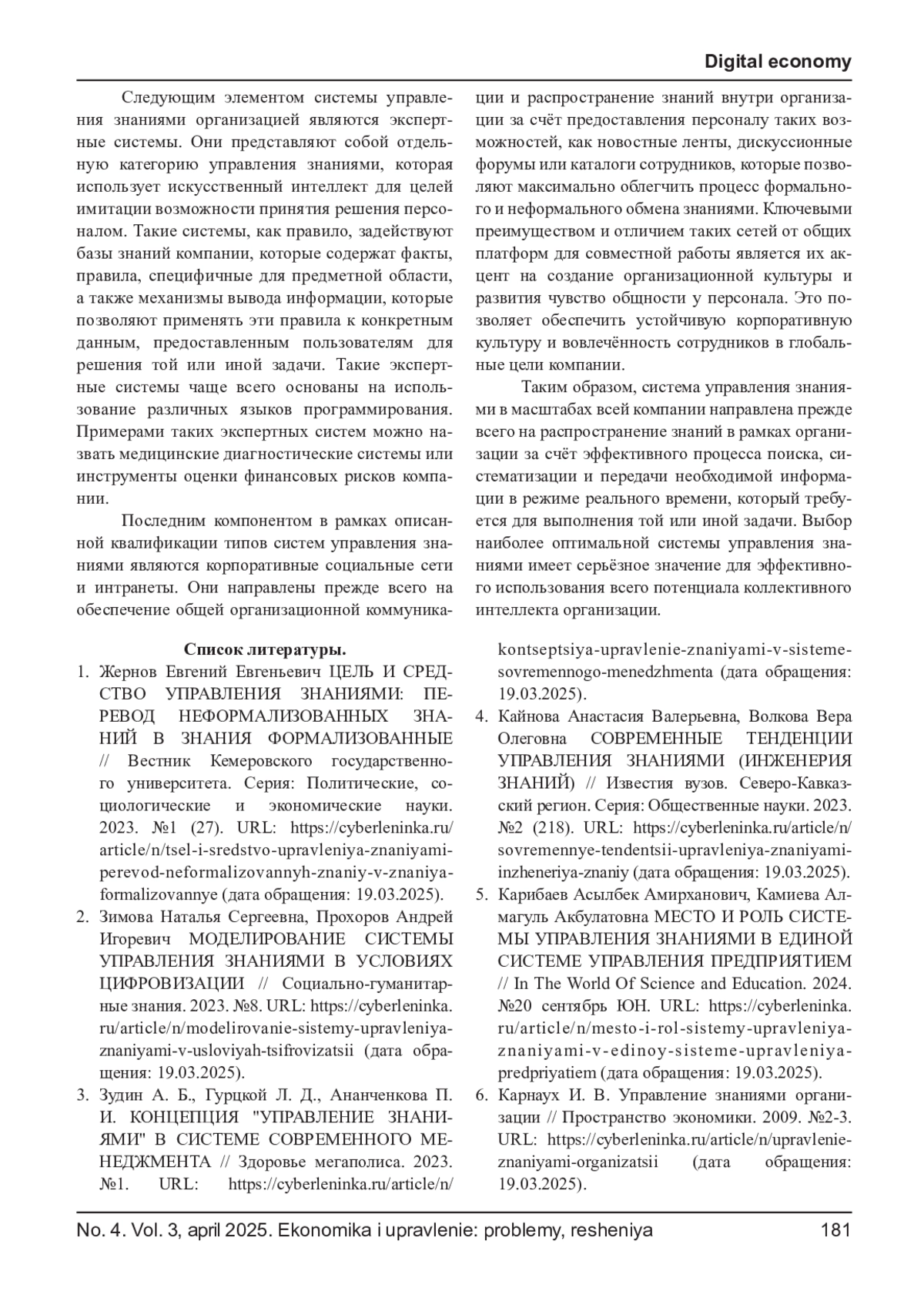 Статья: ОБОСНОВАНИЕ ЗНАЧИМОСТИ СИСТЕМ УПРАВЛЕНИЯ ЗНАНИЯМИ КАК КЛЮЧЕВОГО ЭЛЕМЕНТА УПРАВЛЕНИЯ В УСЛОВИЯХ ЦИФРОВИЗАЦИИ БИЗНЕСА (2025)