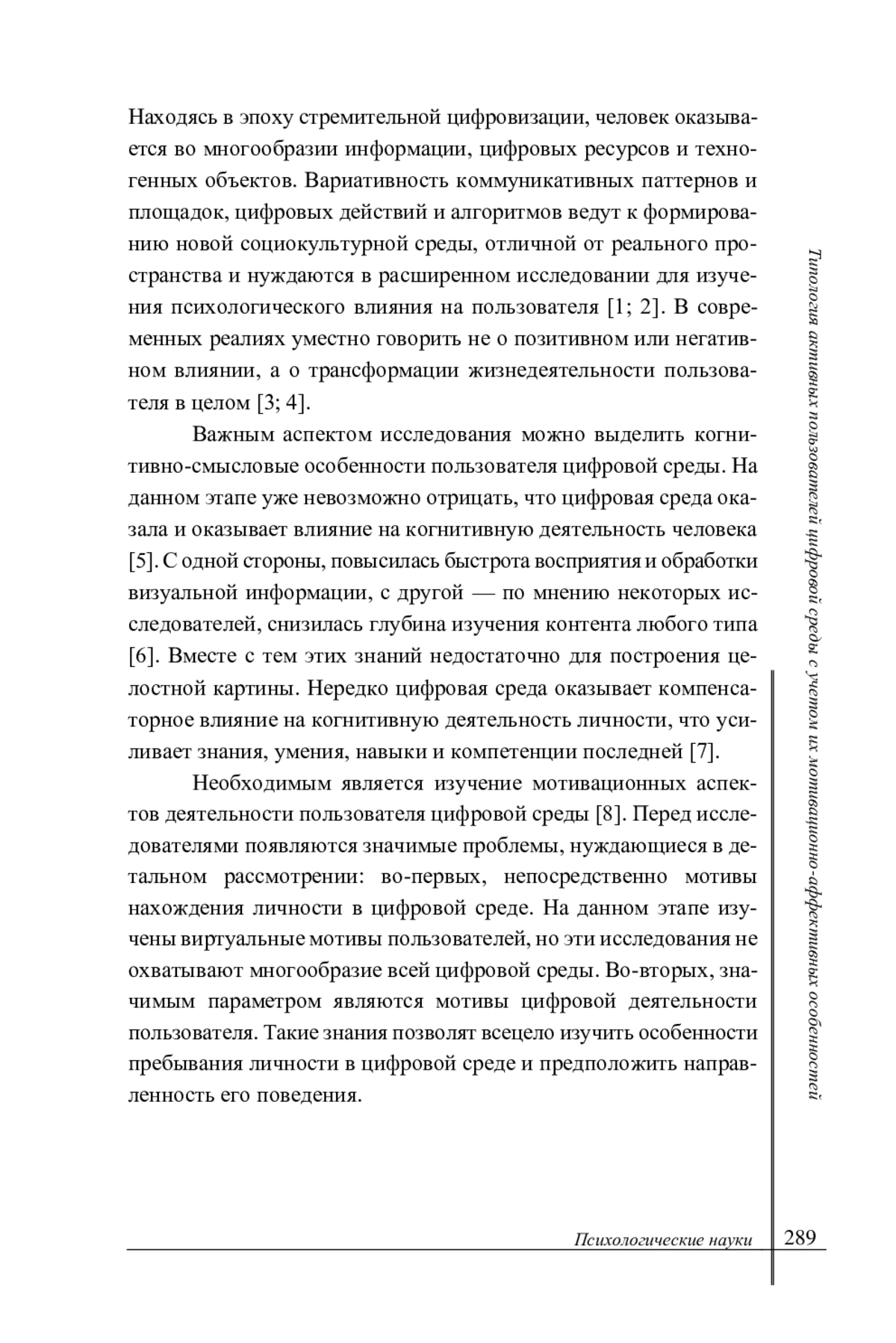 Ключевые фразы: ЦИФРОВАЯ СРЕДА, пользователь, цифровая активность, МОТИВЫ, схемы, эмоциональные состояния, интервенция