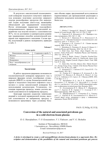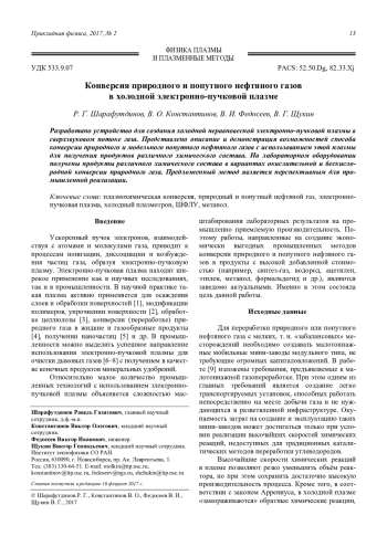 Шарафутдинов Р. Г., Константинов В. О., Федосеев В. И., Щукин В. Г. Конверсия природного и попутного нефтяного газов в холодной электронно-пучковой плазме 13