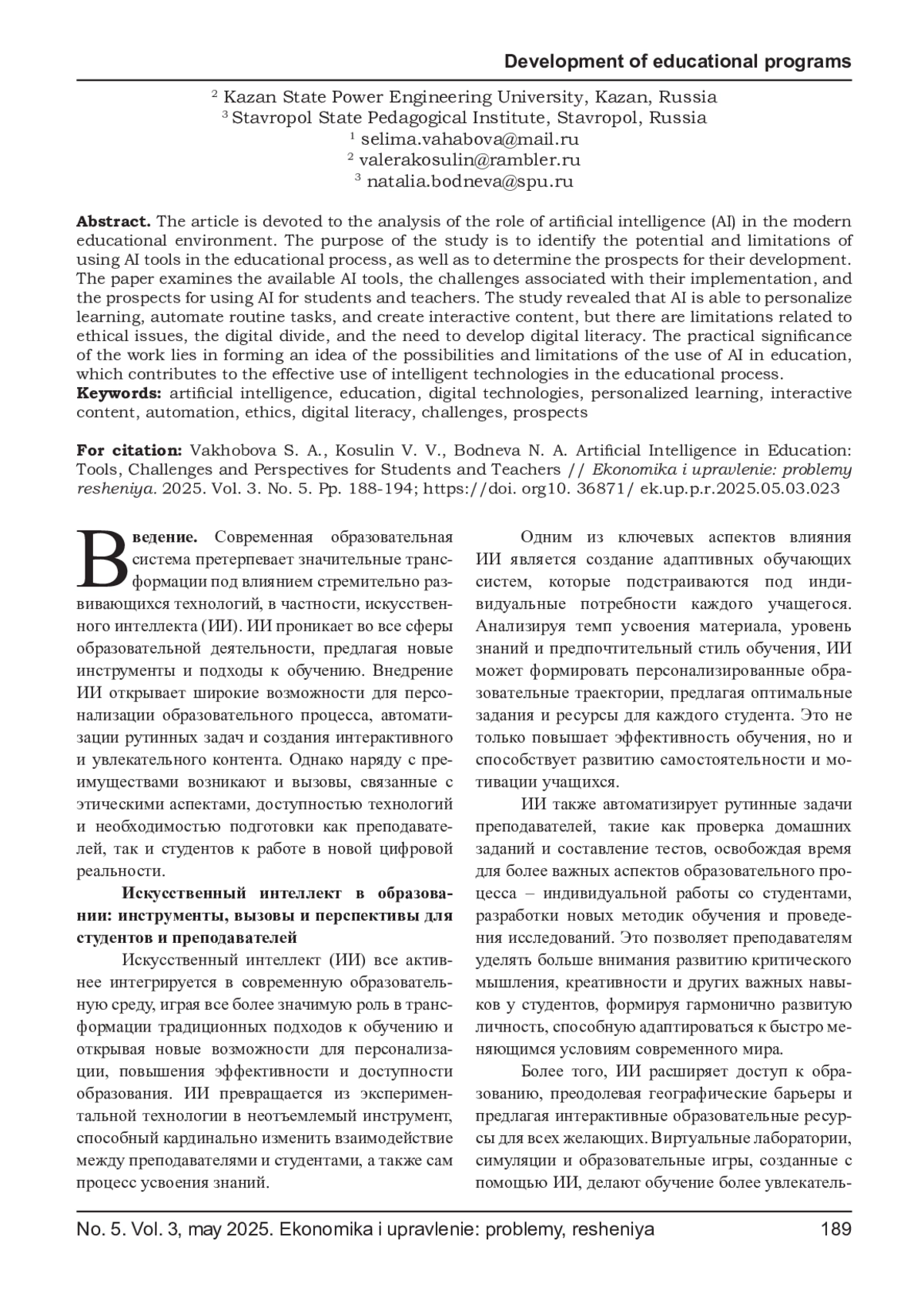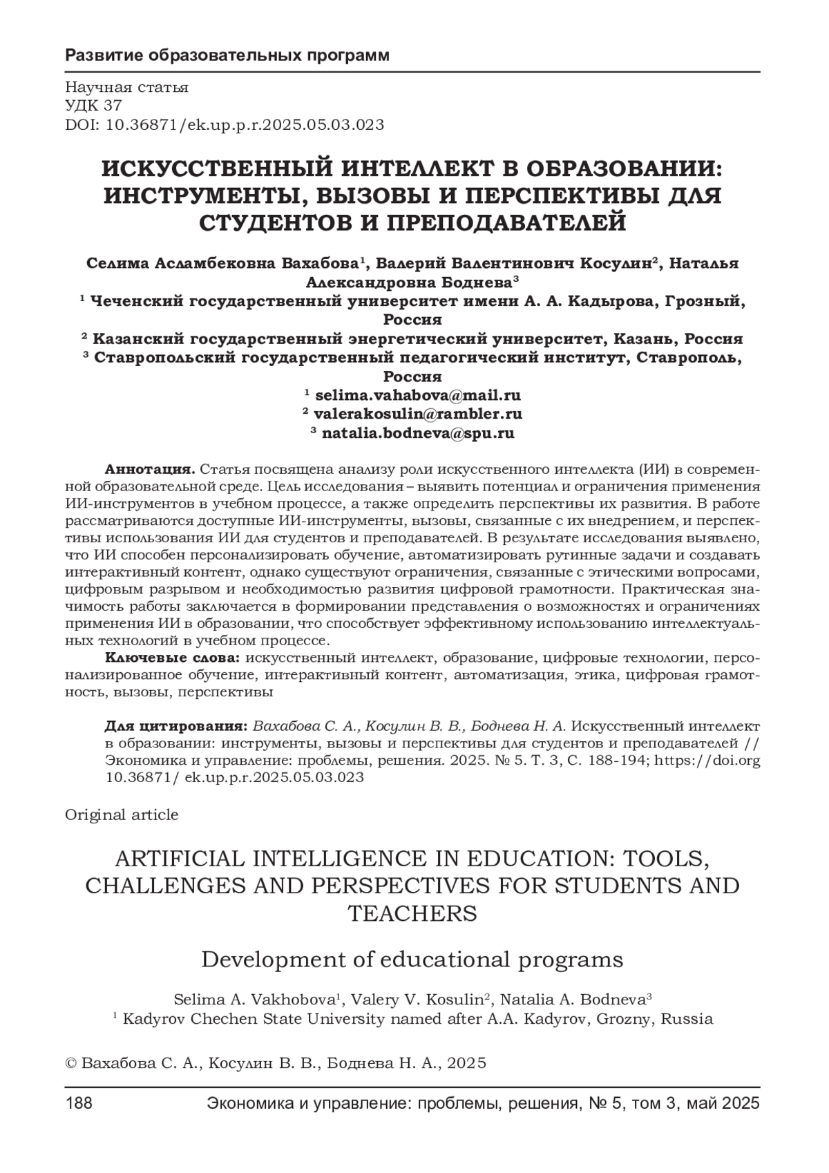 Статья посвящена анализу роли искусственного интеллекта (ИИ) в современной образовательной среде.