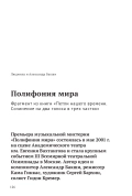 Премьера музыкальной мистерии «Полифония мира» состоялась в мае 2001 г. на сцене Академического театра им. Евгения Вахтангова и стала крупным событием III Всемирной театральной Олимпиады в Москве. Автор идеи и композитор Александр Бакши, режиссер Кама Гинкас, художник Сергей Бархин, солист Гидон Кремер.