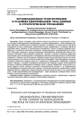 Целью настоящей статьи является анализ роли данных как стратегического ресурса в процессе организационной трансформации в условиях цифровизации, а также выявление ключевых факторов, способствующих успешному переходу к управлению на основе данных (data-driven management). В статье рассмотрены теоретические основы цифровизации и концепции data-driven organization (DDO). Опираясь на существующие исследования, описаны концепция цифровой трансформации и особенности data-driven организации. Проанализированы трансформационные изменения в структурах, процессах и культуре организаций, обусловленные усилением роли данных. Рассмотрены изменения в бизнес-моделях, управлении, структуре и культуре, вызванные цифровыми технологиями и ростом объема данных. Исследованы механизмы интеграции данных в стратегическое управление и процессы принятия решений. Подробно раскрыт процесс признания данных как стратегического ресурса, в том числе в контексте теорий Гранта и Минцберга. Также обсуждается, как данные становятся основой для создания ценности и конкурентного преимущества. Определены основные вызовы и барьеры, с которыми сталкиваются организации при переходе к модели, ориентированной на данные. Особенно подчёркиваются проблемы малых и средних предприятий: ограниченность ресурсов, дефицит знаний, сложность изменений в организационной культуре и т. д. Сформулированы рекомендации по развитию data-driven-подхода с учётом организационных особенностей и уровня цифровой зрелости. Предложены первые принципы (осознание ценности данных и их стратегическая роль), а также альтернативные пути трансформации - через партнёрство с университетами, наставничество, постепенное развитие компетенций.