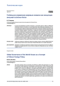 В статье рассматриваются основные концепции и инициативы Китая в области глобального управления океаном. Отмечается, что в настоящее время идея глобального управления занимает ключевое место во внешнеполитической деятельности Китайской Народной Республики и ее позиционировании себя на мировой арене. Политика Китая отражает его ответственный подход к решению мировых проблем и стремление к лидерству на рынке глобальных общественных благ. В этом процессе важное место занимает реализация идеи глобального управления океаном. Ее суть заключается в призыве КНР к сплочению различных стран для решения глобальных проблем Мирового океана. В статье рассматриваются основные концепции, связанные с глобальным управлением океаном: морское сообщество единой судьбы, морская экологическая цивилизация, а также важные проекты по сотрудничеству на море - Морской Шелковый путь и голубое партнерство. Соответственно, цель исследования заключается в анализе концепций и инициатив Китая в области глобального управления океаном. По результатам анализа эмпирического материала в статье дается оценка вклада Китая в мировое развитие.