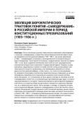 Статья посвящена анализу семантических изменений, происходивших с понятием «самодержавие» в правительственно-бюрократической среде в период проведения конституционной реформы 1905–1906 гг. До начала революции в 1905 г. «самодержавие» указывало в законодательстве на неограниченность власти императора. После принятия Основных государственных законов 23 апреля 1906 г. в них было сохранено упоминание этого понятия, хотя законодательные полномочия монарха были ограничены Государственной Думой. Опираясь на ряд принципов, предложенных в рамках истории понятий, автор рассматривает трактовки данного концепта чиновниками, участвовавшими в разработке и обсуждении конституционной реформы, чтобы понять, что стояло за этим решением. На материале стенограмм и протоколов правительственных совещаний, на которых обсуждалось изменение институционального дизайна политической системы, автор показывает, что у сановников не было единого взгляда на значение понятия «самодержавие»; более того, их интерпретации противоречили друг другу и активно эволюционировали в это время. Отдельное внимание в работе уделено периодической печати, в которой до общества доносилась позиция как отдельных бюрократов, так и правительства в целом. Автор приходит к выводу, что решение авторов конституционной реформы сохранить «самодержавие» в качестве понятия, описывавшего обновленный государственный строй Российской империи, решало задачи пересборки легитимирующего правящую династию мифа, который в политических условиях 1905–1906 гг. оспаривался революционными силами. Эта семантическая новация была произведена путем обращения к неославянофильской трактовке данного концепта и отражала процесс национализации монархии.