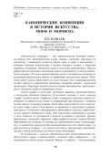 Канонические конвенции — это типологические духовные синтагмы разных эпох, представленные в виде «канона / канонов», зависящих от понимания / считывания человеком образа мира, в связях и отношениях, с которым состоит человечество и частью которого человек и общество являются. В родовом отношении канон в искусстве предопределен образом референта или объектом поклонения. Канон учреждается со всей очевидностью знаменно. Но поиск тождественных канону пластических средств его раскрытия предполагает работу по выработке канонических правил. Появление нового канона происходит на сломе больших эпох и материализуется особым образом в триединстве факторов «матрицы бытия»: социальной организации общества, технологическом уровне производства, представлением о духовном, идейном содержании жизни. Канон-«морф» в искусстве палеолита выражен преимущественно в поклонении объектам биоценоза. В мезолите, неолите и эпохе металла «морф» сменяет канон-«морфема» в виде культурного архетипа образа мироздания, в котором есть человек и сотворившая мир сущность, с которой человек связан с помощью жертвы. Такой образ мира дошел до нас в структуре языка, мифа, сказки. Он развернут по вертикали и горизонтали в уровнях надземного и подземного пространств и представлен в разных мифопоэтических моделях сотворенного мира. Эта структура сохраняется в неолите и эпоху металла, но уточняется в деталях культурного предания. Древние цивилизации сохраняют образную мифо-морфологическую контекстность Мироздания как системы, но внутри них зарождается канон-«метаморфема», в частности, авраамическая монотеистическая идея образа мира, а в ряде регионов и культур — его моническая модель, признающая существование всего одной субстанции или одного типа субстанций. В монотеизме и монизме упраздняется идея множественности мифологических миров, соответственно меняется образ референта — им становится в одном случае личность Творца, а в другом — внеличностная, внепространственная и вневременная «субстанция», определенная в буддизме категорией «нирвана». Прежние канонические структуры не исчезают, но они соподчинены новым законам объектного и предметного содержания образа мира. С Нового времени возникает особая модальность средневекового канона — «антропоморфема» как сциентический центр картины мира — предикатив, в котором человек признается ее интеллектуальным центром. Эта образная линия в ХХ столетии ложится в основание еще одной модальности — «субъекта»-канона, в результате дерзновенной попытки подсознательного конструирования образа мира, т. е. в парадигматической модели его презентации. Сегодня все канонические формы присутствуют в мировой художественной культуре