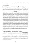 Терроризм в современном мире представляет собой не только криминальное явление, но и многогранную социально-философскую проблему, затрагивающую основы общественного устройства, этические принципы и экзистенциальные аспекты человеческого существования. В условиях глобализации, стремительного развития технологий и информационной революции терроризм эволюционирует, принимая новые формы, такие как кибертерроризм, проникающий в цифровую инфраструктуру общества, усиливая его деструктивный потенциал. Этот феномен выходит за рамки традиционных представлений о насилии, требуя глубокого философского анализа природы зла, свободы воли, границ морали и роли общества в создании условий, порождающих радикализм. Терроризм выступает зеркалом общественных противоречий, где страх, идеология и экзистенциальный кризис переплетаются, формируя вызовы, которые невозможно преодолеть без философской рефлексии. Цель исследования — раскрыть терроризм как социально-философскую проблему, проанализировать его социальные, идеологические и технологические корни, оценить последствия для общественной ткани и предложить пути противодействия, основанные на этических и философских принципах. Методы исследования опираются на анализ научной литературы, включая работы российских авторов. Применен междисциплинарный подход, сочетающий социально-философский анализ, этическую рефлексию и изучение современных форм терроризма, таких как кибертерроризм, в контексте глобальных и локальных процессов, включая геополитические конфликты. Результаты исследования раскрывают терроризм как проявление экзистенциального кризиса и социального отчуждения, разрушающее социальный договор через страх и идеологию. Кибертерроризм подчеркивает новые вызовы, связанные с цифровизацией, усиливая геополитическую напряженность. Последствия терроризма включают культуру страха, этический релятивизм и эрозию доверия в обществе. Противодействие требует превентивной этики, образования и международного сотрудничества. Сделан вывод о том, что терроризм как социально-философская проблема выявляет хрупкость человеческого бытия и общественных ценностей, подчеркивая необходимость переосмысления гуманизма, свободы и этической ответственности в условиях глобальных вызовов. Интеграция философских идей в социальную практику, включая профилактику радикализма через образование, межкультурный диалог и устранение социальных неравенств, способна устранить почву для насилия.