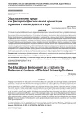В статье анализируется образовательная среда как фактор, который оказывает воздействие на профессиональную ориентацию студентов с инвалидностью, и проблемы, с которыми они сталкиваются в процессе обучения в вузе, а также предлагаются практические рекомендации для решения существующих трудностей в сфере инклюзивного образования. Вопрос профессионального самоопределения молодежи с инвалидностью на данный момент является трудноразрешимым. В современной России граждане, имеющие инвалидность, остаются особой категорией, которая в недостаточной степени включена в социальные процессы, несмотря на различные попытки государственных структур разрешить сложившуюся ситуацию. В современных условиях высшие учебные заведения применяют разнообразные практики, нацеленные на помощь в профессиональном самоопределении и получении важнейших навыков и знаний таким студентам, для того, чтобы далее они могли быть конкурентоспособными на рынке труда, раскрыть свой потенциал, самореализоваться и интегрироваться в различные общественные структуры. Однако многие практики являются неэффективными. В рамках социологического исследования был проведен массовый опрос студентов с инвалидностью, обучающихся в московских высших учебных заведениях, а также серия экспертных интервью со специалистами в сфере высшего образования, авторами различных научных трудов, посвященных обучению в университете студентов с особыми образовательными потребностями.