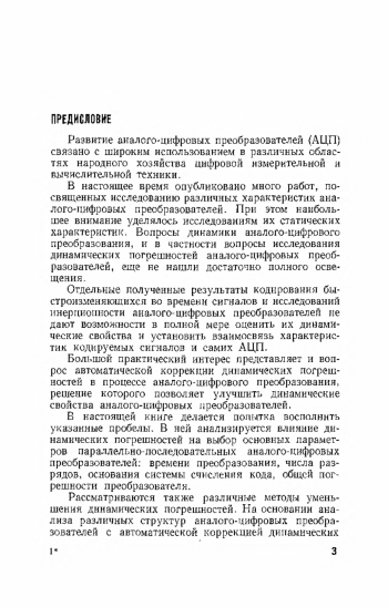 В книге во взаимосвязи рассматриваются основные характеристики аналого-цифровых преобразователей, определяющие динамику аналого-цифрового преобразования: динамические погрешности, быстродействие и частотный спектр кодируемых сигналов. Большое внимание уделено методам уменьшения динамических погрешностей путем автоматического контроля и коррекции процесса аналого-цифрового преобразования. Книга предназначена для инженерно-технических работников, занимающихся разработкой и использованием аналого-цифровых преобразователей, а также для широкого круга специалистов по информационно-измерительной технике. Кроме того, книга может быть полезна аспирантам и студентам высших учебных заведений соответствующего профиля.