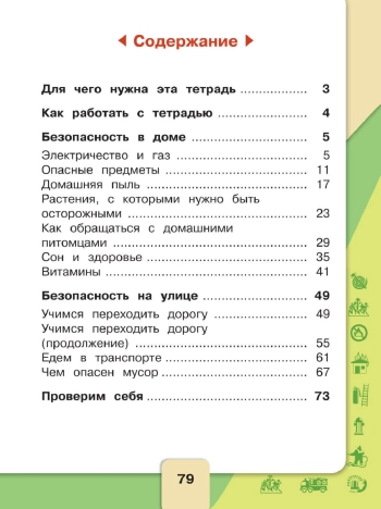 Рабочая тетрадь разработана в соответствии с требованиями Федерального государственного образовательного стандарта начального общего образования, входит в учебно-методический комплект А. А. Плешакова «Окружающий мир» системы учебников «Школа России». В тетради содержится материал по основам здорового образа жизни. Младшие школьники познакомятся с различными опасными и чрезвычайными ситуациями, научатся предвидеть и избегать опасности. Рекомендации по безопасному поведению приводятся на примере конкретной опасной ситуации. Также в тетради имеется определенная система обозначений для рисунков и заданий, помогающая учащимся лучше ориентироваться в учебном материале.