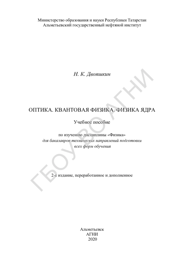 Книга: ОПТИКА. КВАНТОВАЯ ФИЗИКА. ФИЗИКА ЯДРА по изучению дисциплины «Физика», для бакалавров технических направлений подготовки всех форм обучения