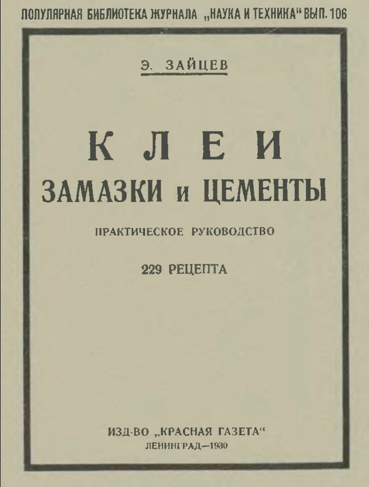 Книга: Популярная библиотека журнала «Наука и техника». Вып. 106. Клеи, замазки и цементы
