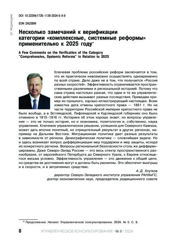 Статья: НЕСКОЛЬКО ЗАМЕЧАНИЙ К ВЕРИФИКАЦИИ КАТЕГОРИИ "КОМПЛЕКСНЫЕ, СИСТЕМНЫЕ РЕФОРМЫ" ПРИМЕНИТЕЛЬНО К 2025 ГОДУ