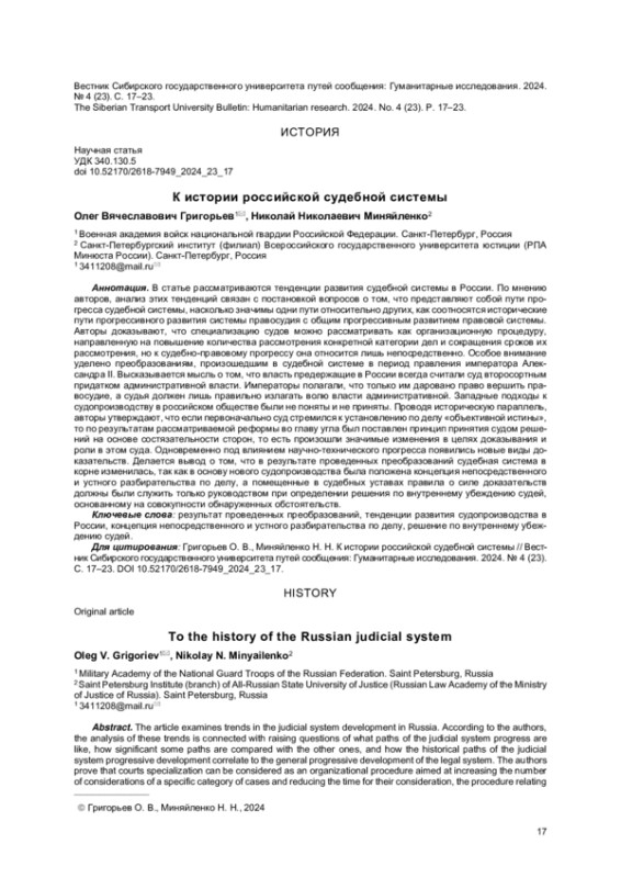 Статья: К ИСТОРИИ РОССИЙСКОЙ СУДЕБНОЙ СИСТЕМЫ