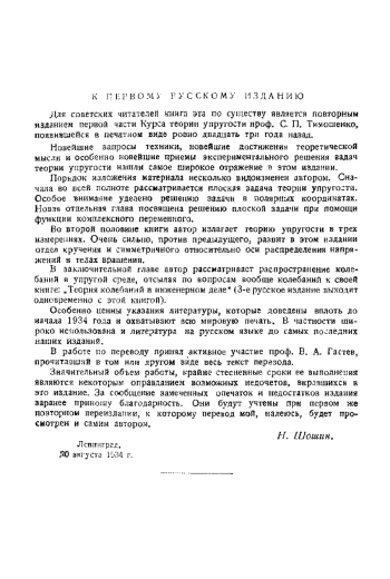 Она является полным курсом теории упругости, четко построенным, отражающим все новейшие достижения последних двадцати лет, истекших с момента выхода в свет первой части на русском языке.